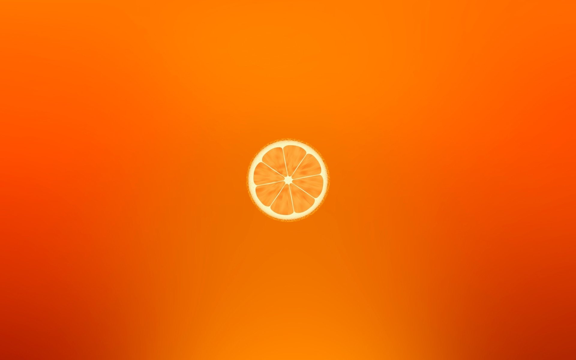 Description: A slice of orange is shown in the middle of a blurry background with a light reflection on the top of the image.