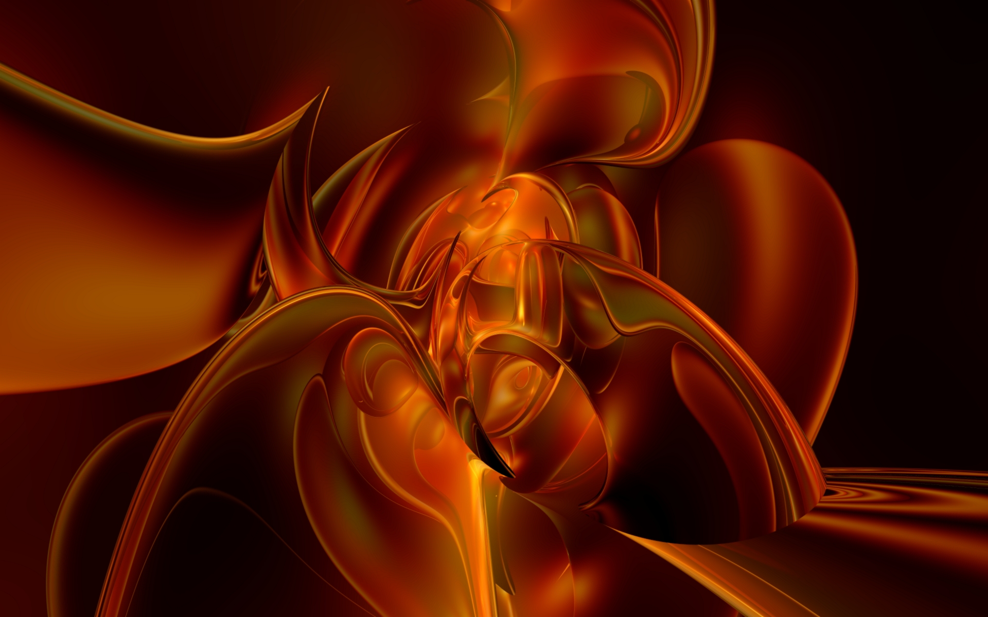 Description: A computer generated image of a flower in orange and yellow colors with a black background and a red center.