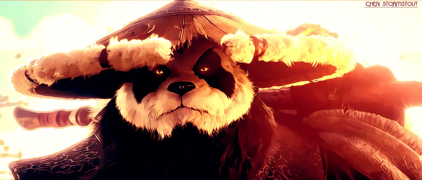Description: A panda bear wearing a hat and a feathered hat on its head with a sky background behind it.