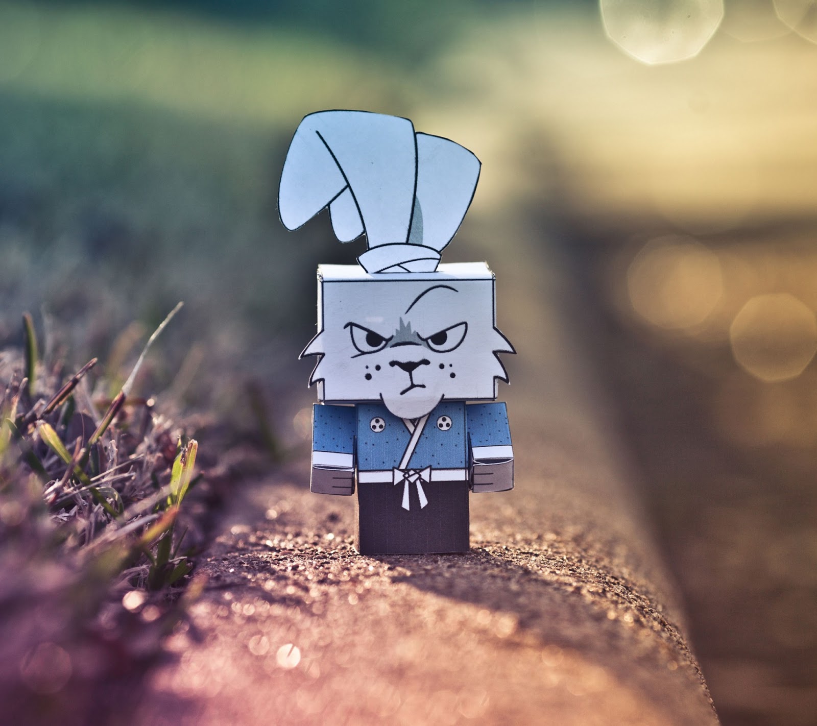 Description: A paper toy of a cat with a hat on it's head and a cigarette in his mouth.