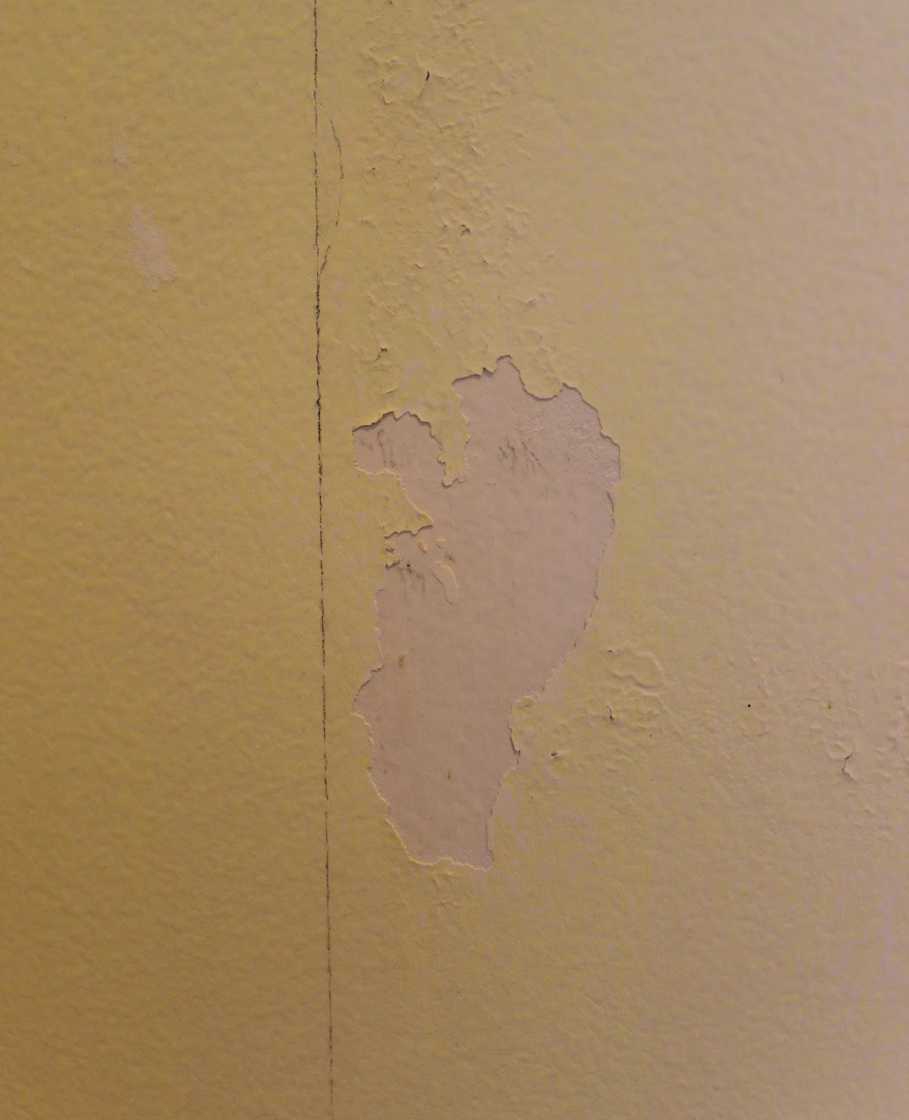 Description: A wall with a peeling paint and a white wall with a white wallpaper on it and a white wall with a white wall.
