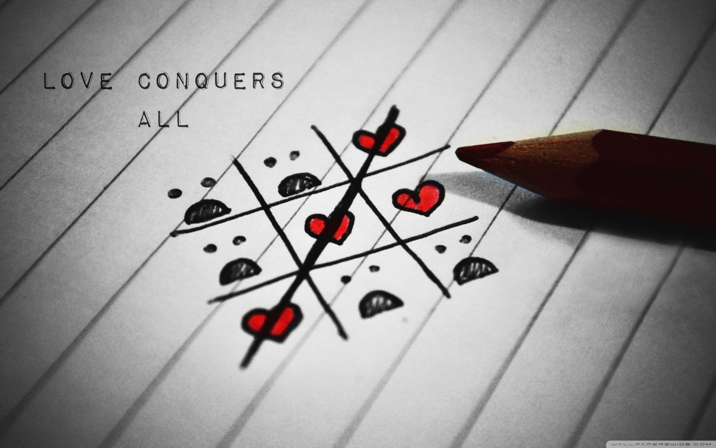 Description: A pencil is laying on a piece of paper with a drawing of hearts and arrows on it.