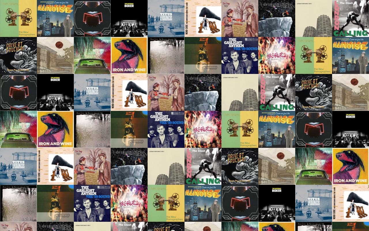 Description: A collage of various images of people and buildings in different colors and sizes.