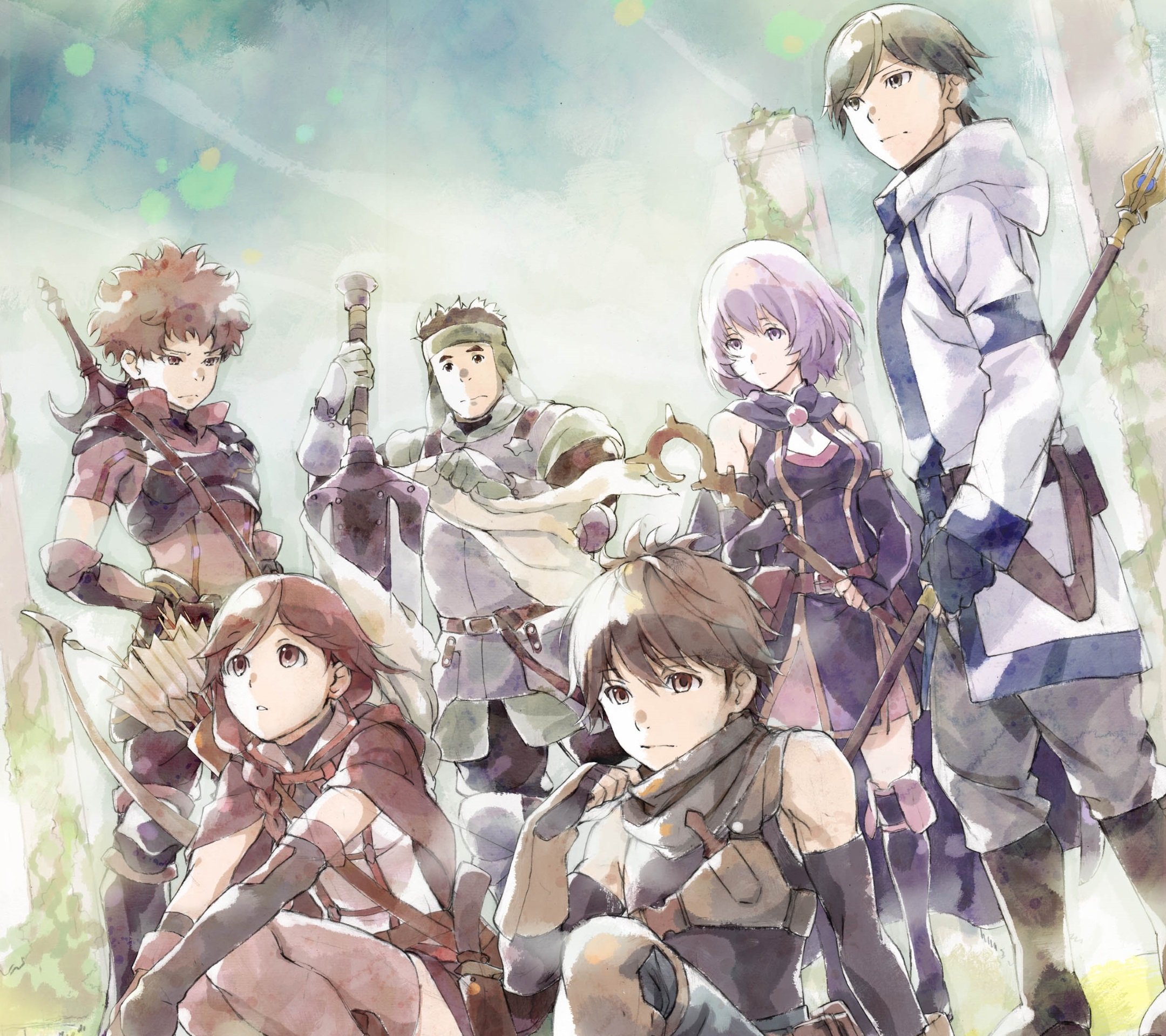 Description: A group of people standing next to each other in front of trees and grass with swords in their hands.