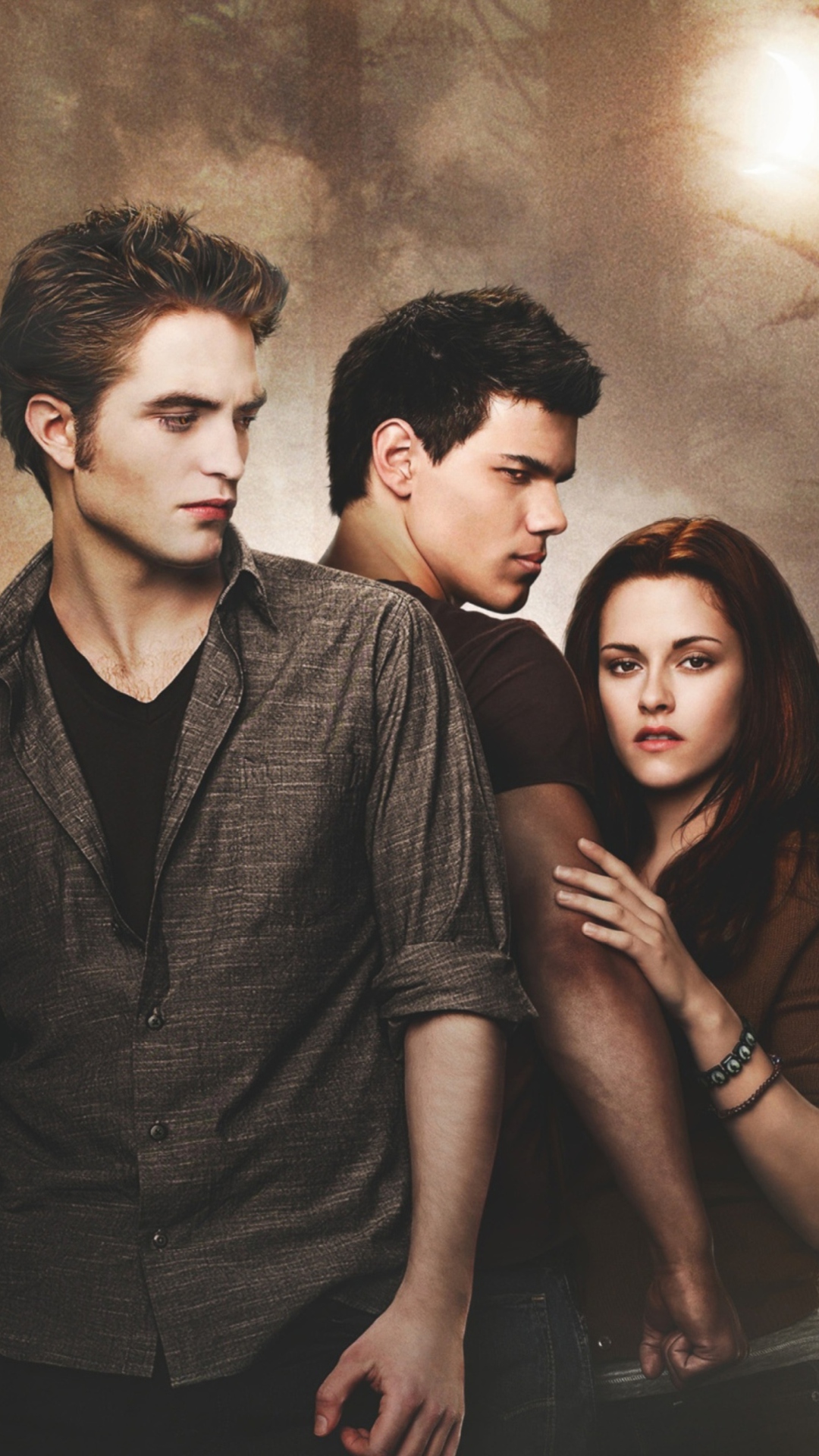 Description: A group of people standing next to each other in front of a wall with a tree on it and a sky background.