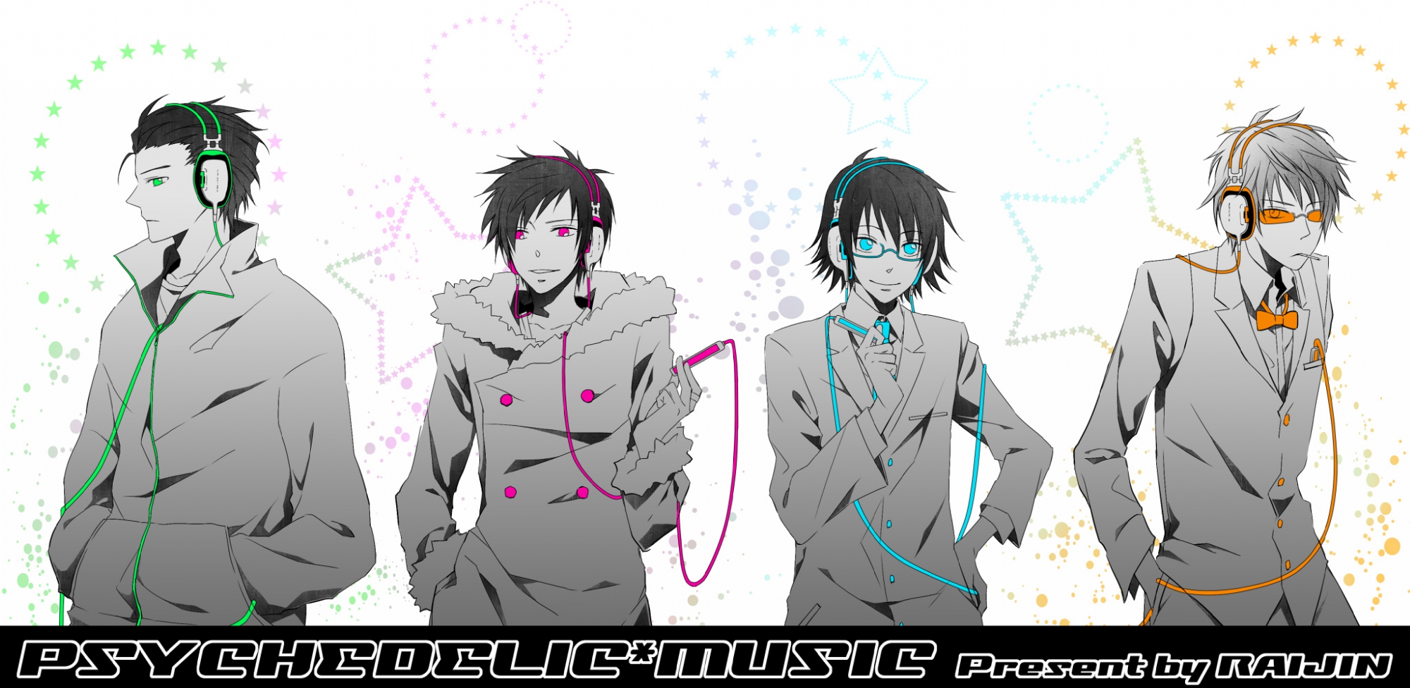 Description: A group of people standing next to each other in front of a white background with a colorful line of text.