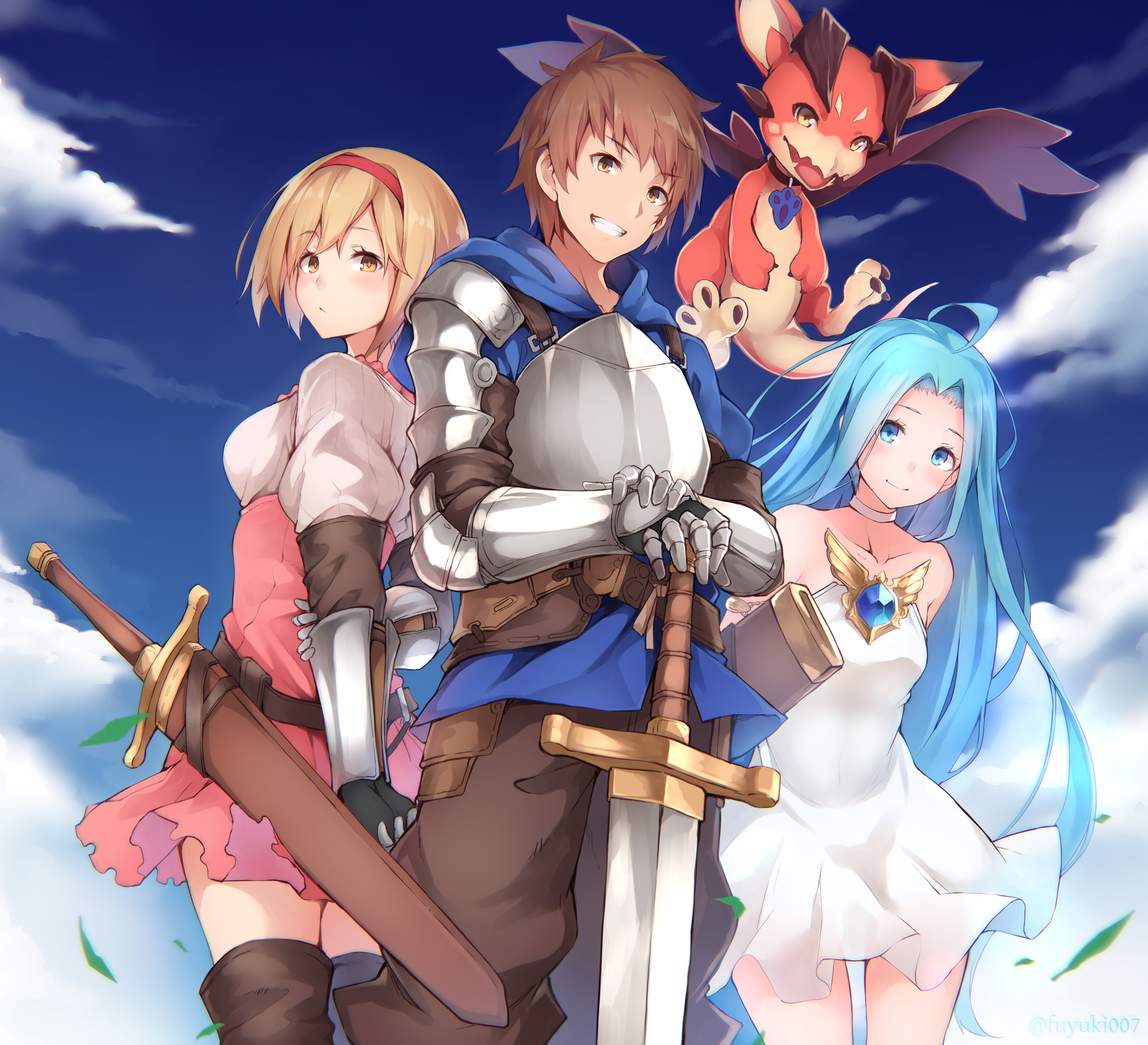 Description: A group of people standing next to each other in front of a sky with clouds and a fox on it.