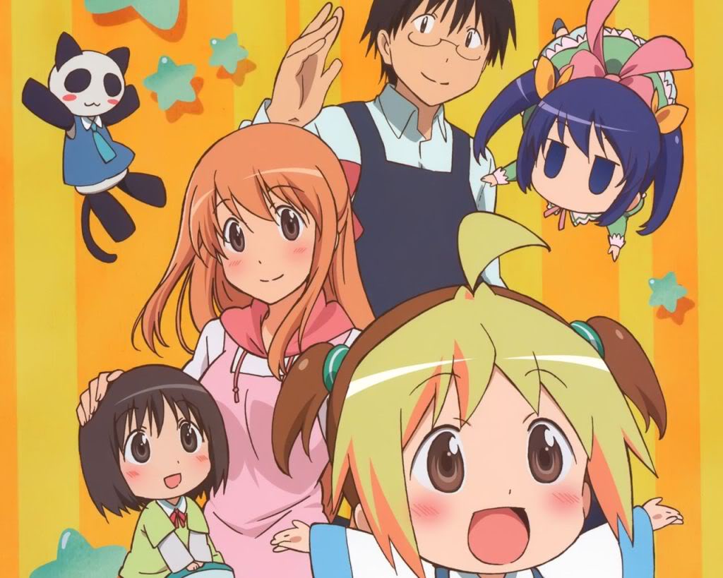 Description: A group of people standing next to each other on a yellow background with pandas and pandas on it.