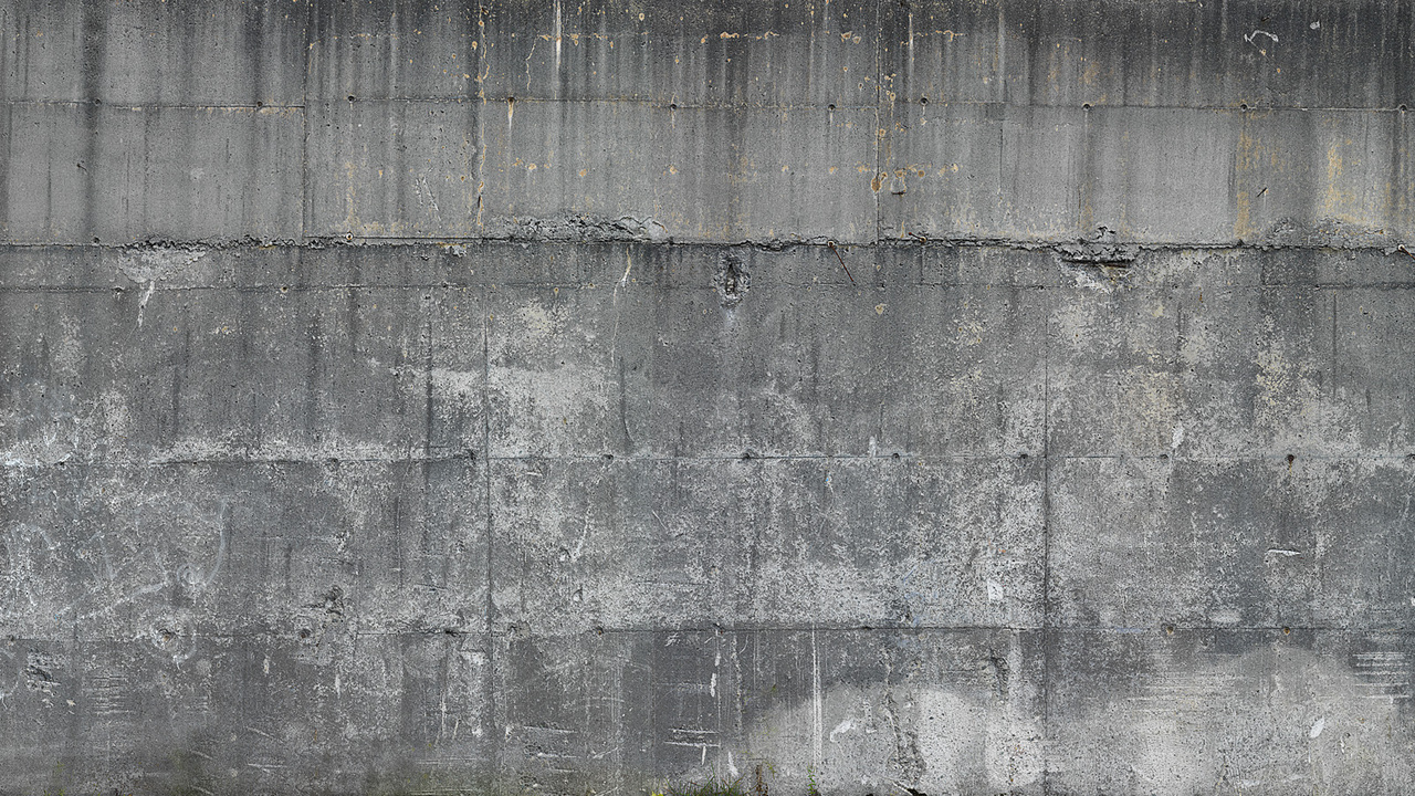 Description: A person sitting on a bench in front of a wall with a clock on it's side and a bench in front of it.