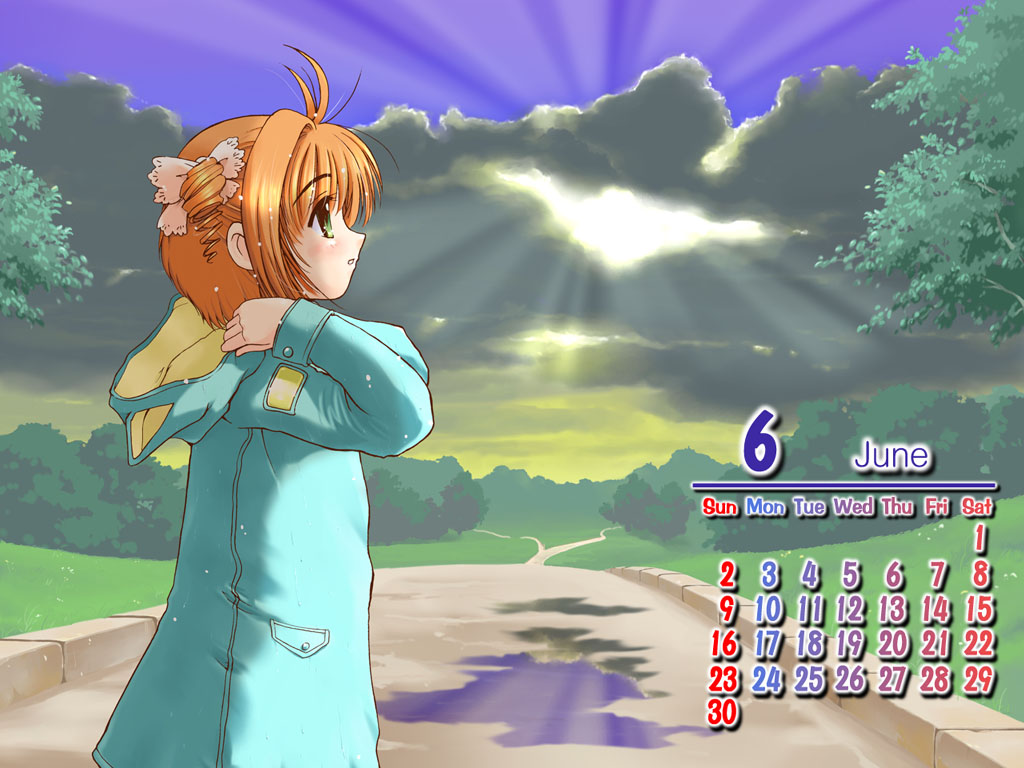 Description: A person standing in front of a calendar with a sky background and clouds in the background.