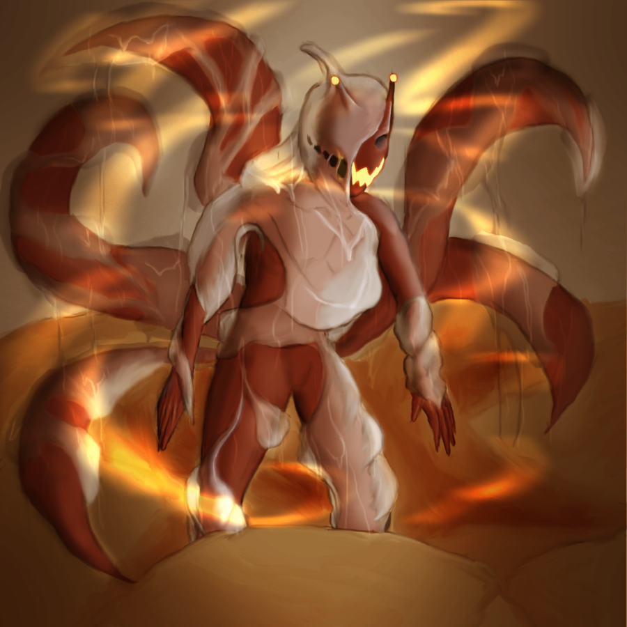 Description: A drawing of a person in a costume with a snake on his back and a snake on his back.