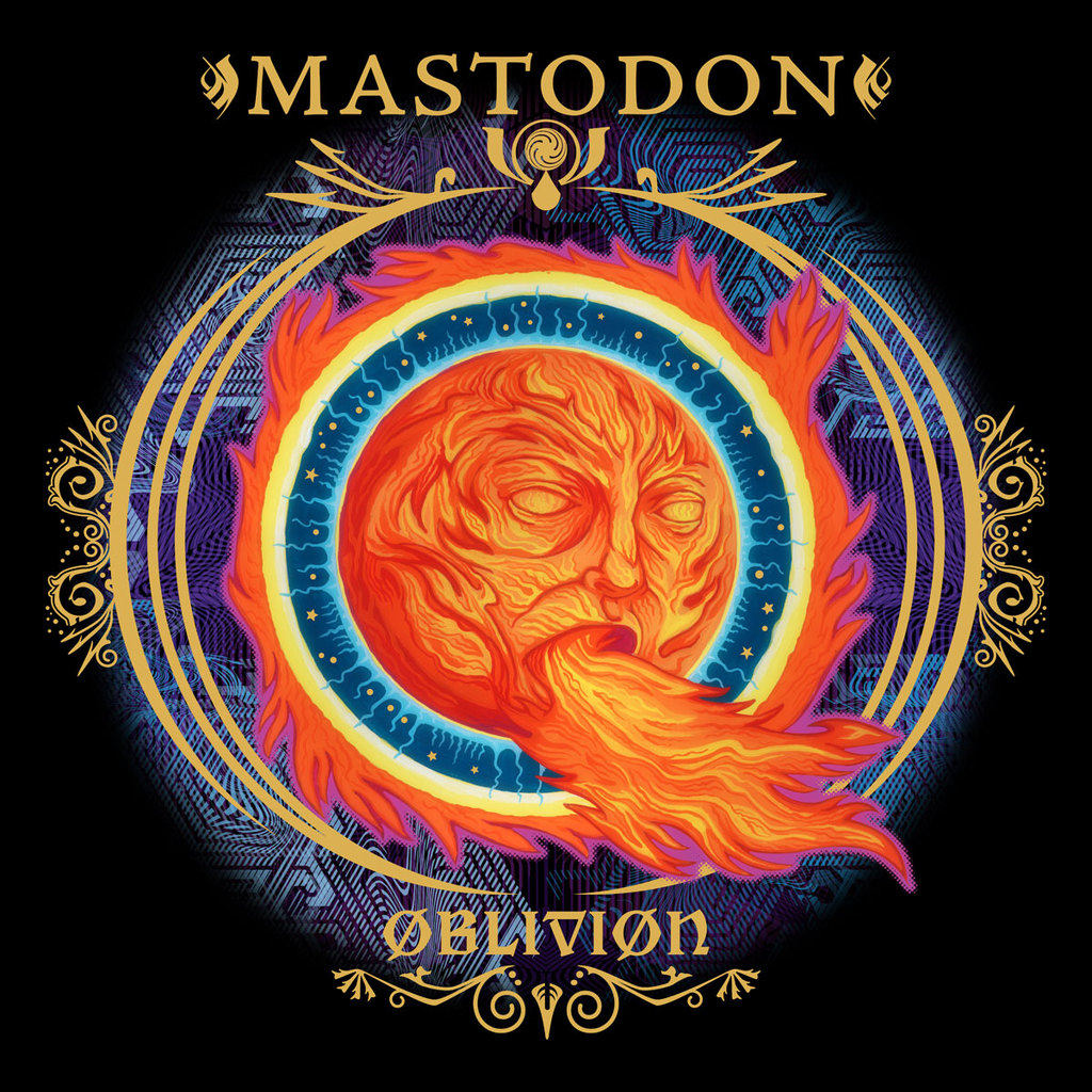 Description: A picture of a person with a fire on their face and the words mastodn above it in a circle.