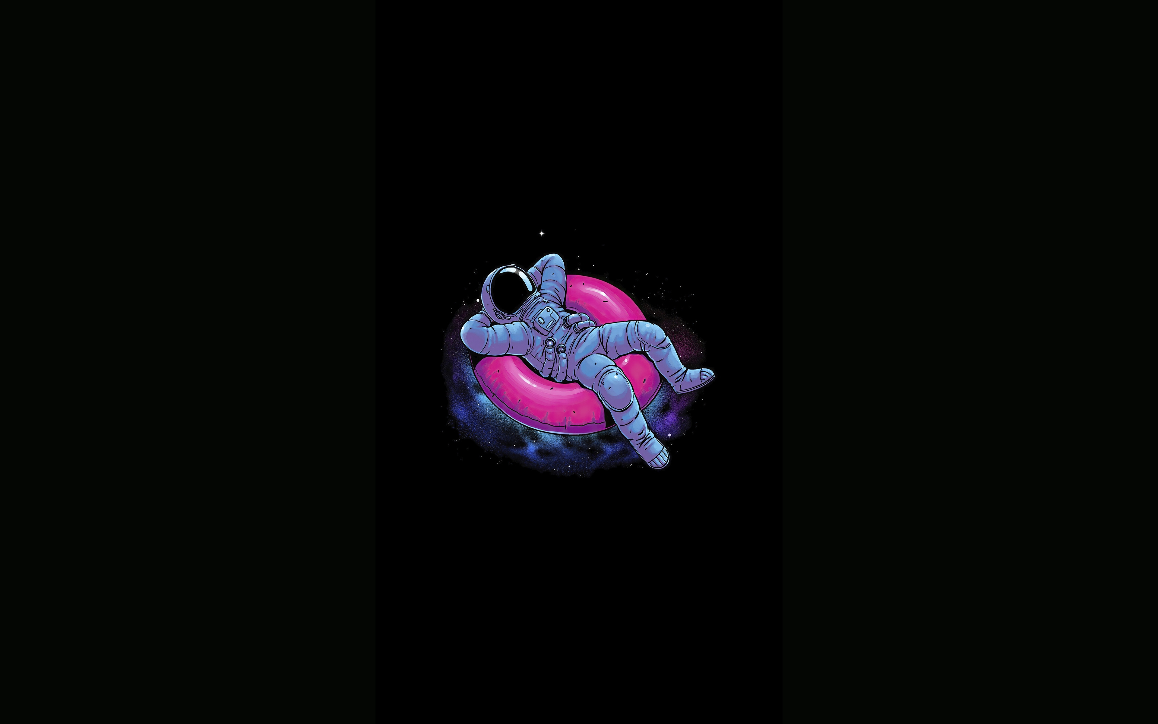 Description: A person floating on a pink ball in the dark sky with a black background and a black background with a black background.