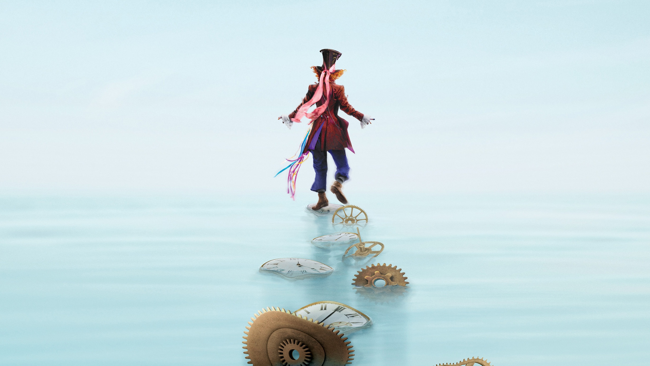 Description: A person standing on a piece of gear in the water with a clock in the middle of the picture.
