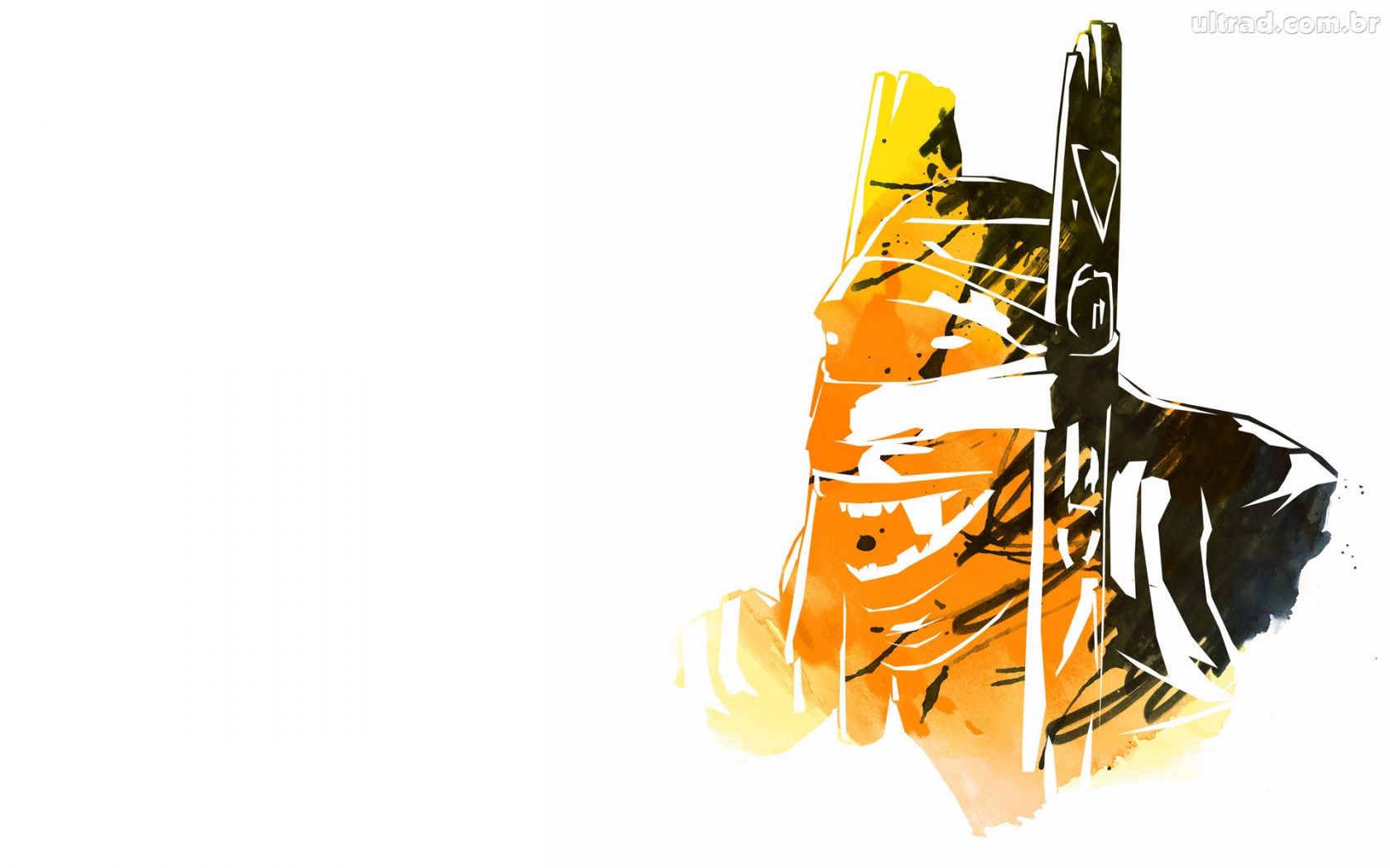 Description: A drawing of a person with a hat and a cane in his hand and a background of orange and black.
