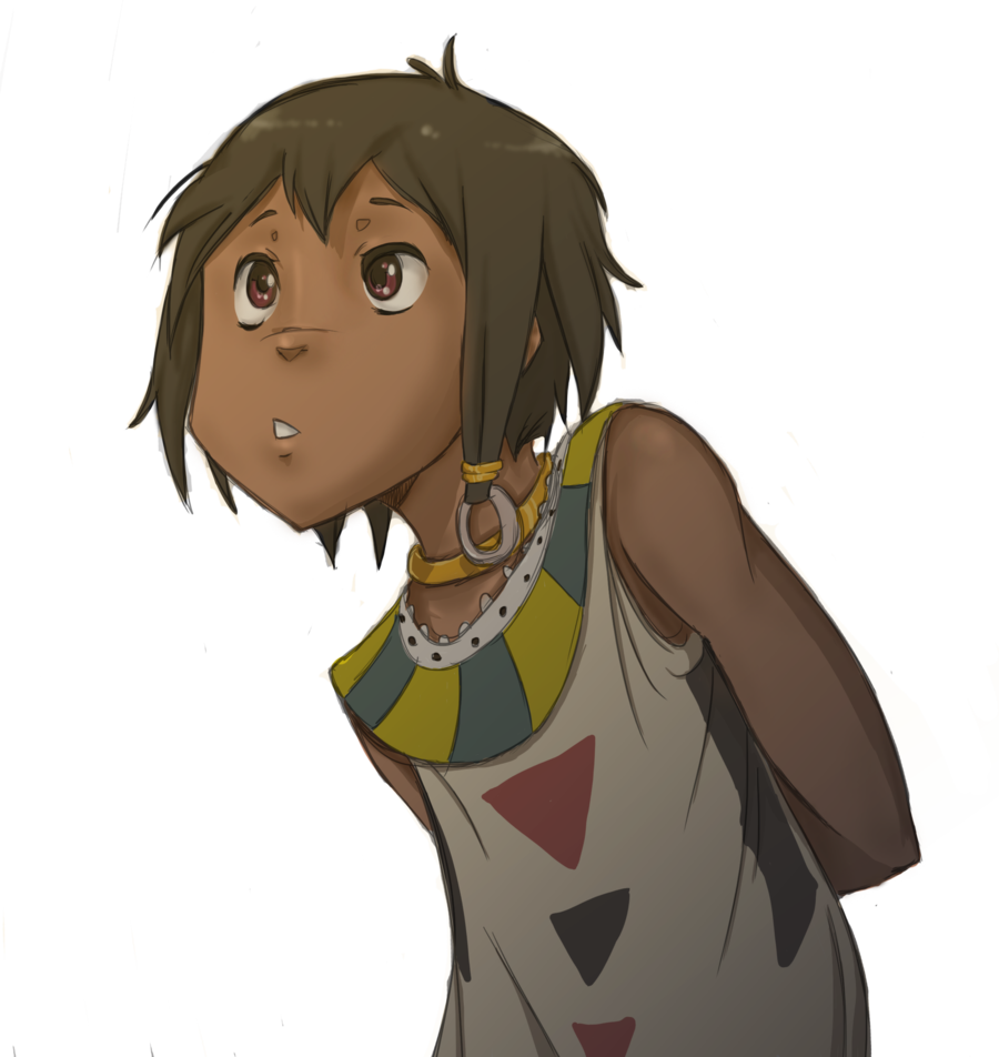 Description: A drawing of a person with a shirt on and a necklace on his neck and a necklace on his neck.