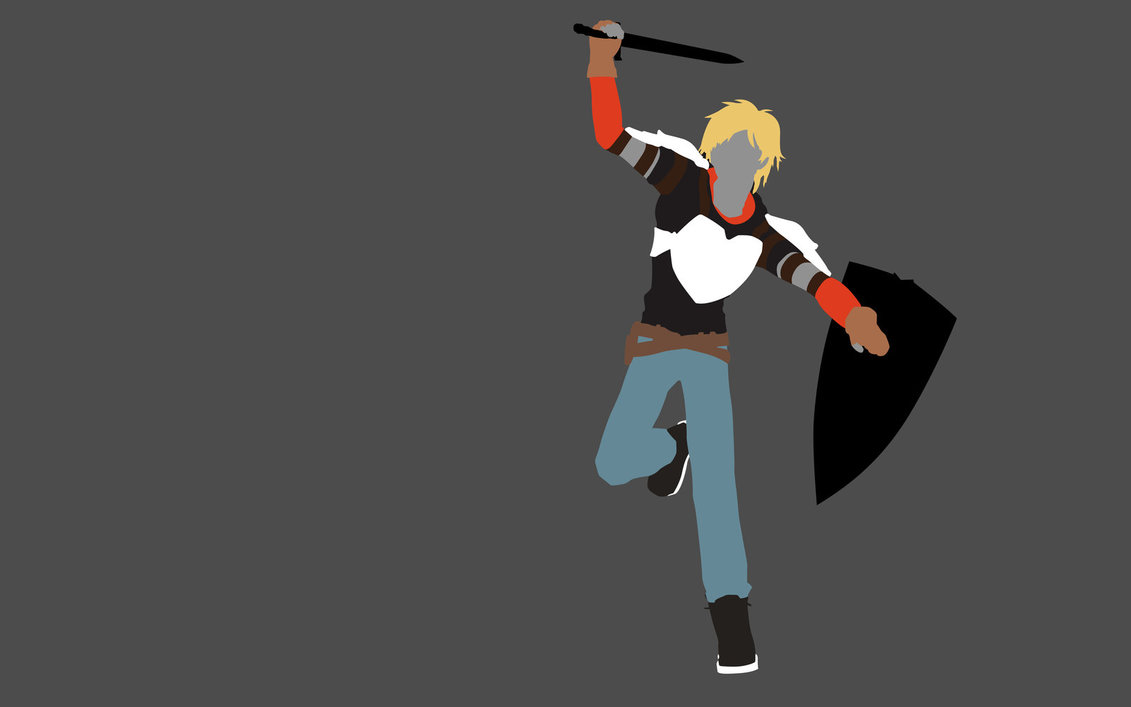 Description: A person with a sword and a cape on their head is in the air with a black cape on his head.
