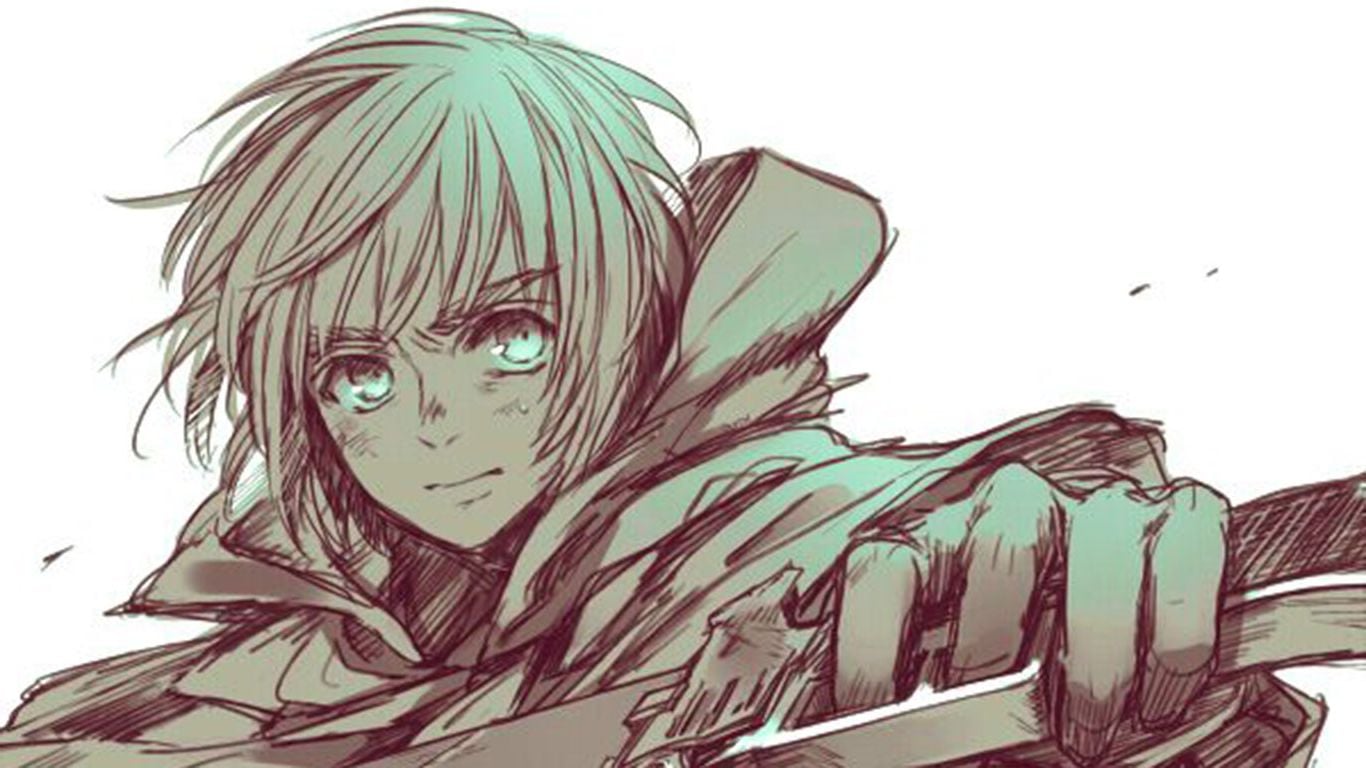Description: A drawing of a person with a sword in their hand and a hood on their head and a hood on his head.