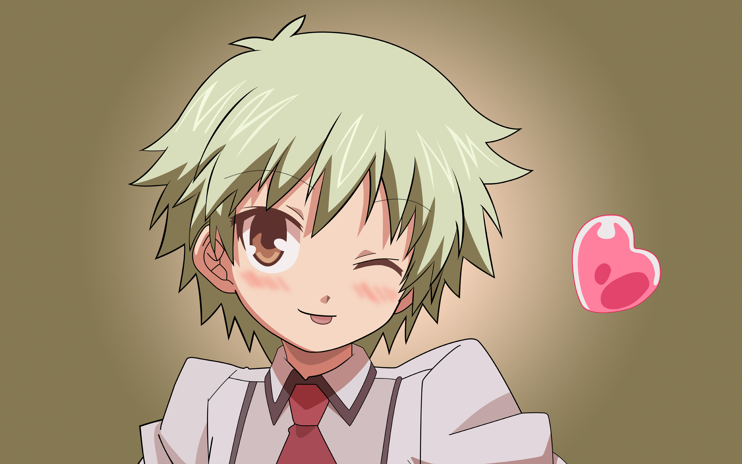 Description: A person with a tie and a heart shaped object in the air above their head.