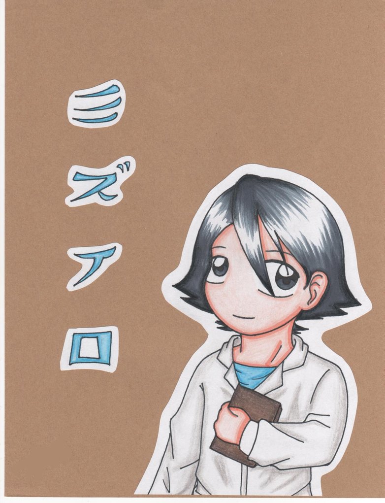 Description: A drawing of a person with a tie on and a name tag on it's back side.