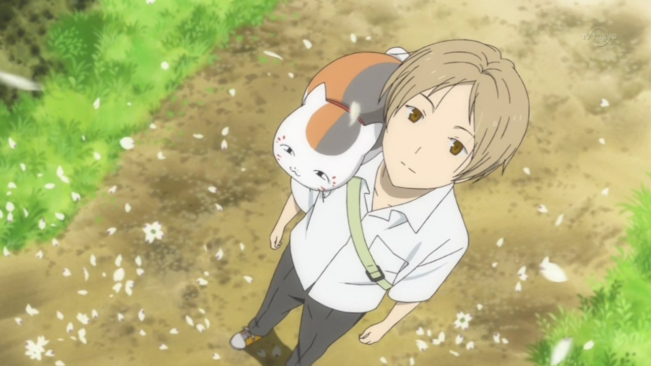 Description: A person walking down a dirt road with a cat on his back and a cat on his shoulder.