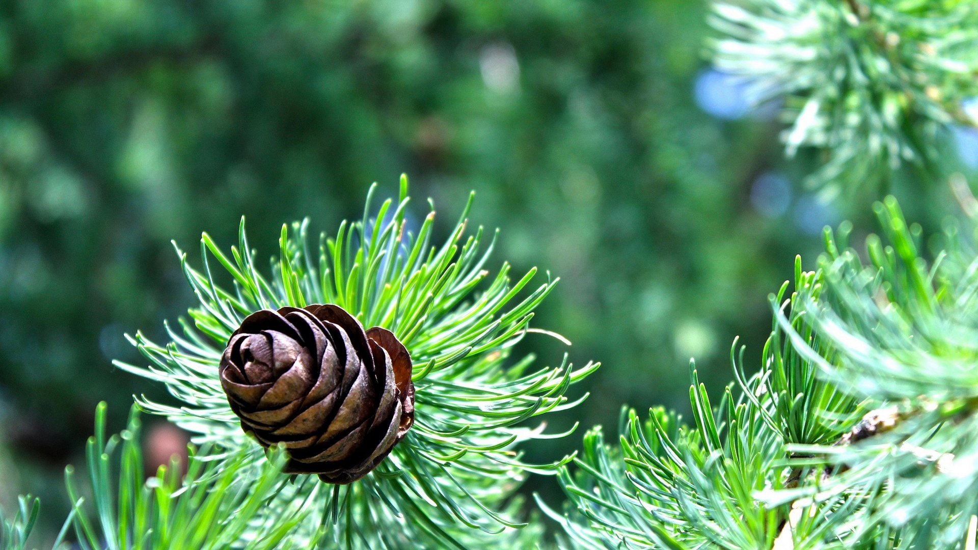 Description: A pine cone is on a pine tree branch with green needles and needles on it.