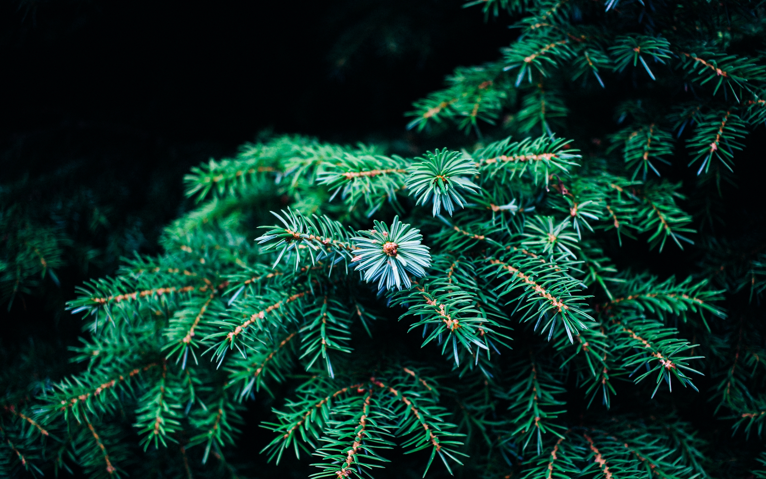 Description: A close up of a pine tree with needles and needles on it's branches.
