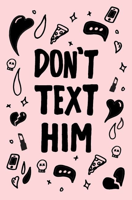 Description: A pink background with black lettering that says don't text him and a lot of different icons around it.