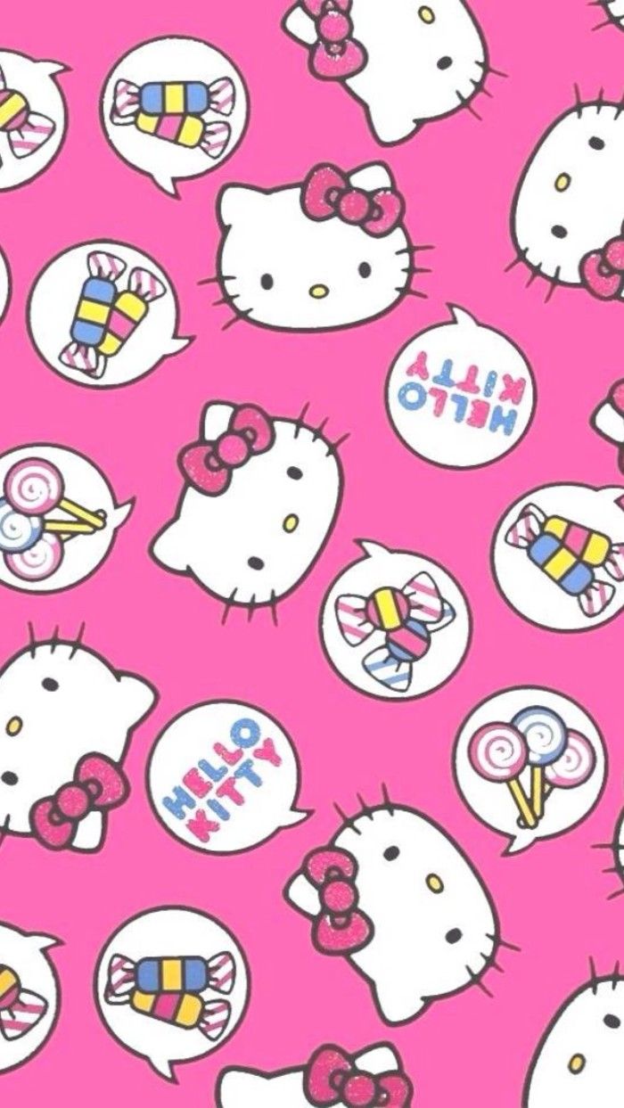 Description: A pink background with hello kitty and candy canes on it's side and a hello kitty on the other side.