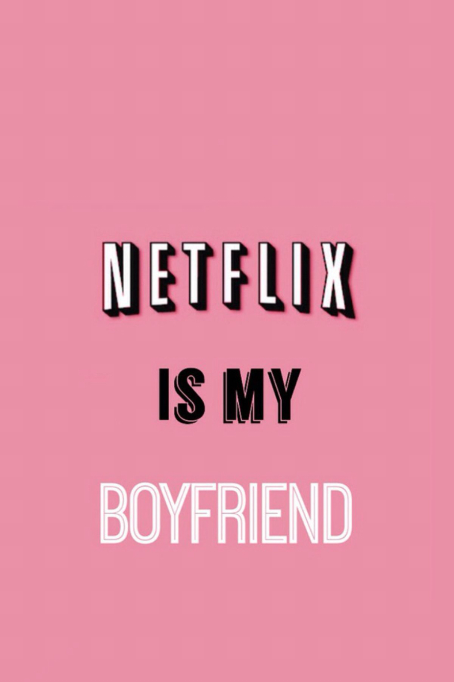 Description: A pink background with the words netflix is my boyfriend on it and a black and white text that reads netflix is my boyfriend.