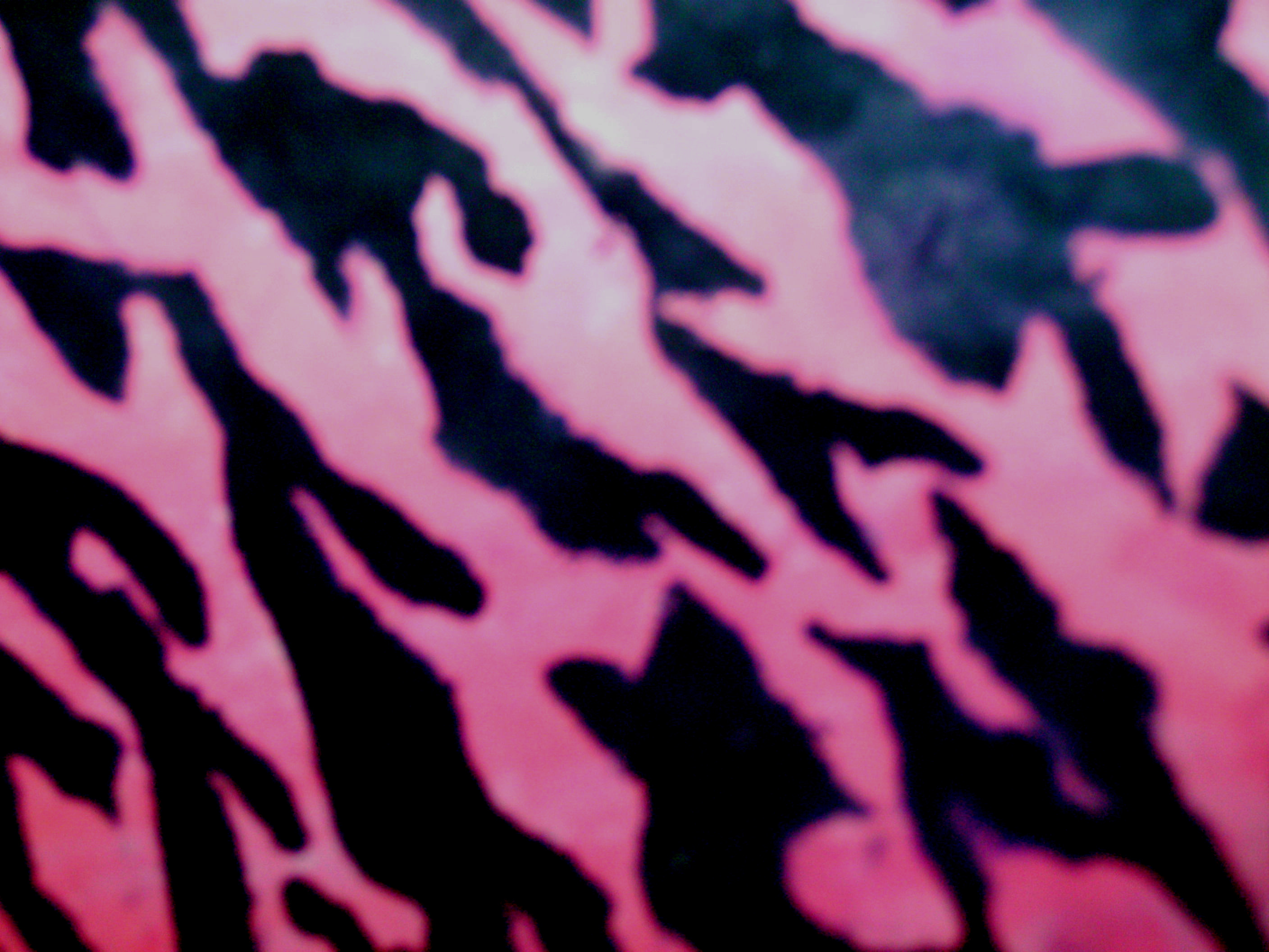 Description: A close up of a pink and black animal print pattern on a wallpaper background with a blurry image of a zebra print.