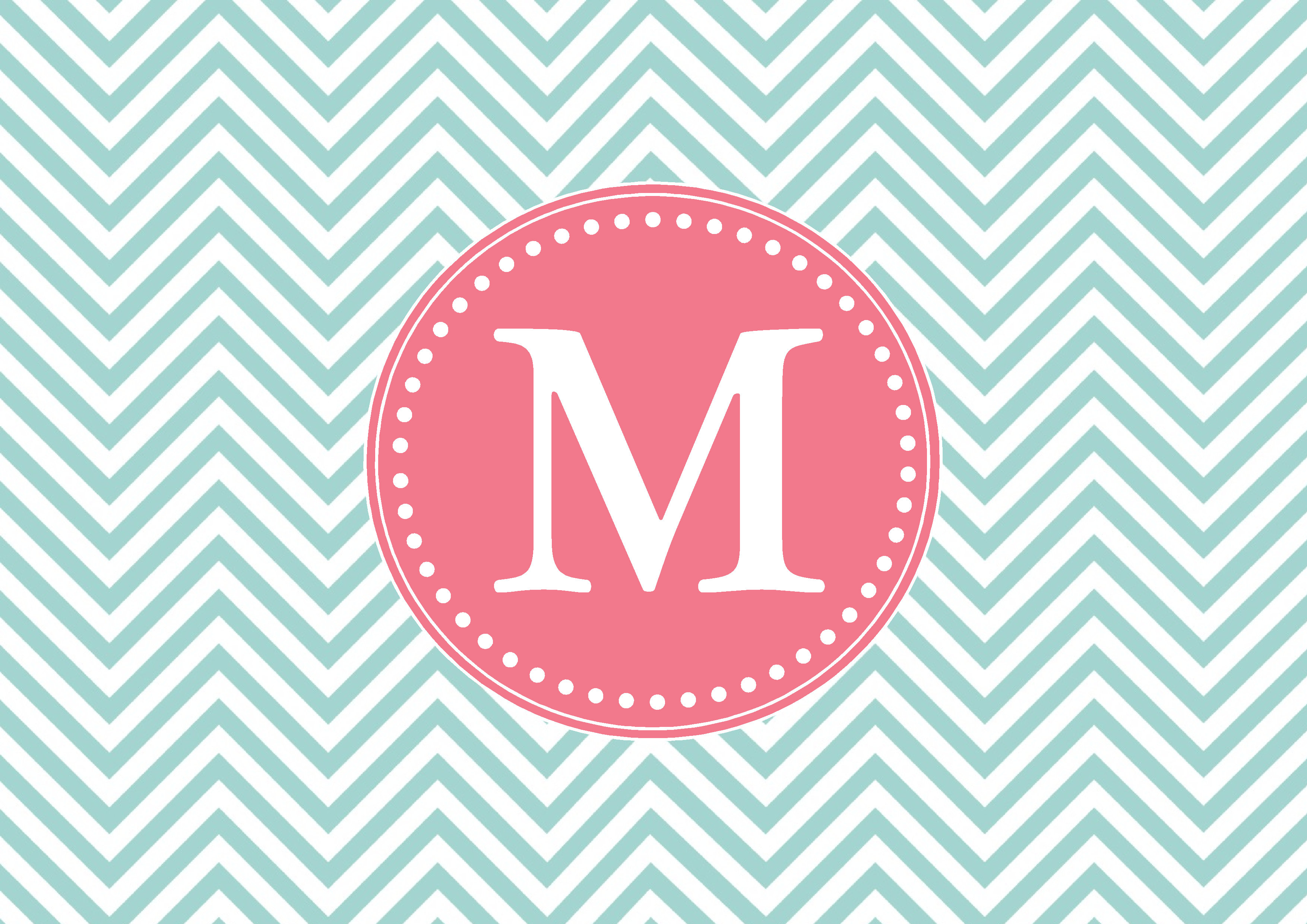 Description: A pink and blue monogrammed monogrammed wallpaper with a chevron pattern and a monogrammed circle.