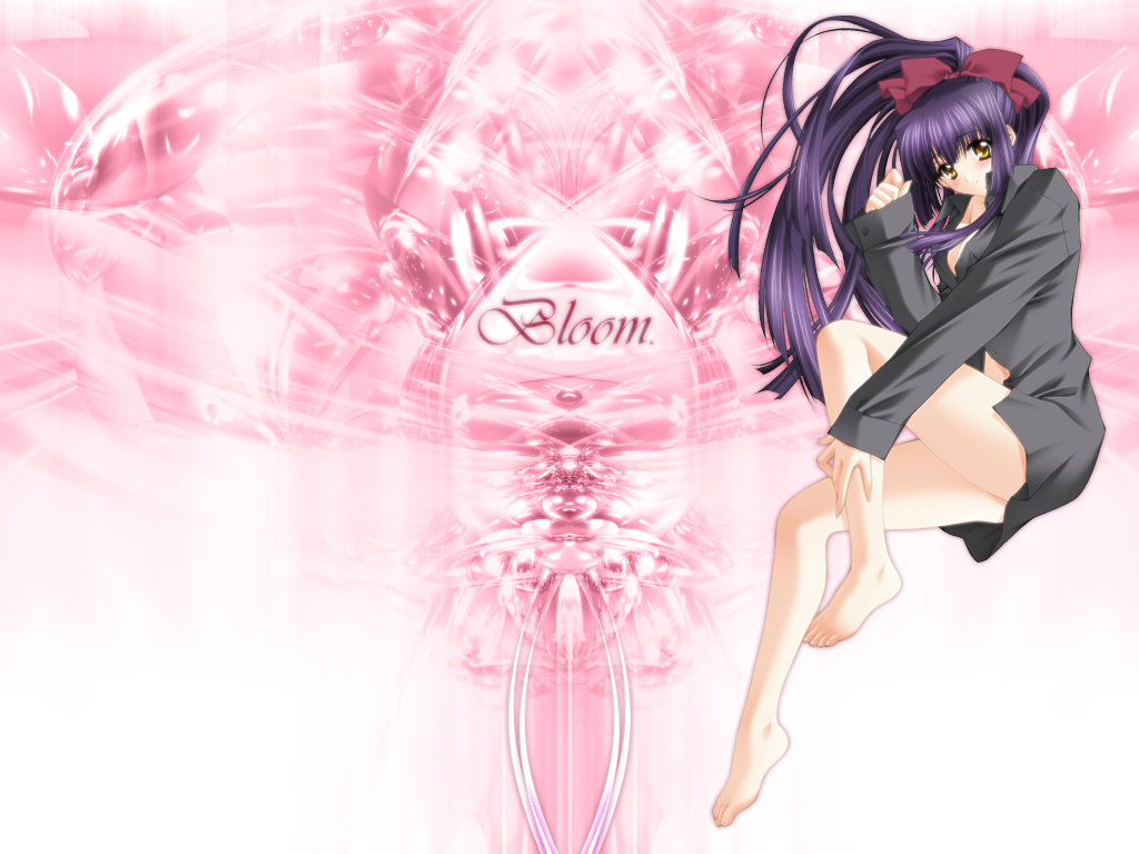 Description: A girl in a dress is sitting on a pink background with a pink flower in the background and a pink flower in the foreground.