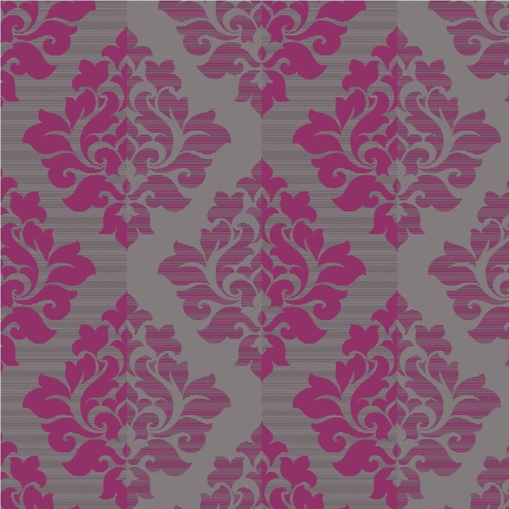 Description: A pink and grey wallpaper with a large flower pattern on it's side.
