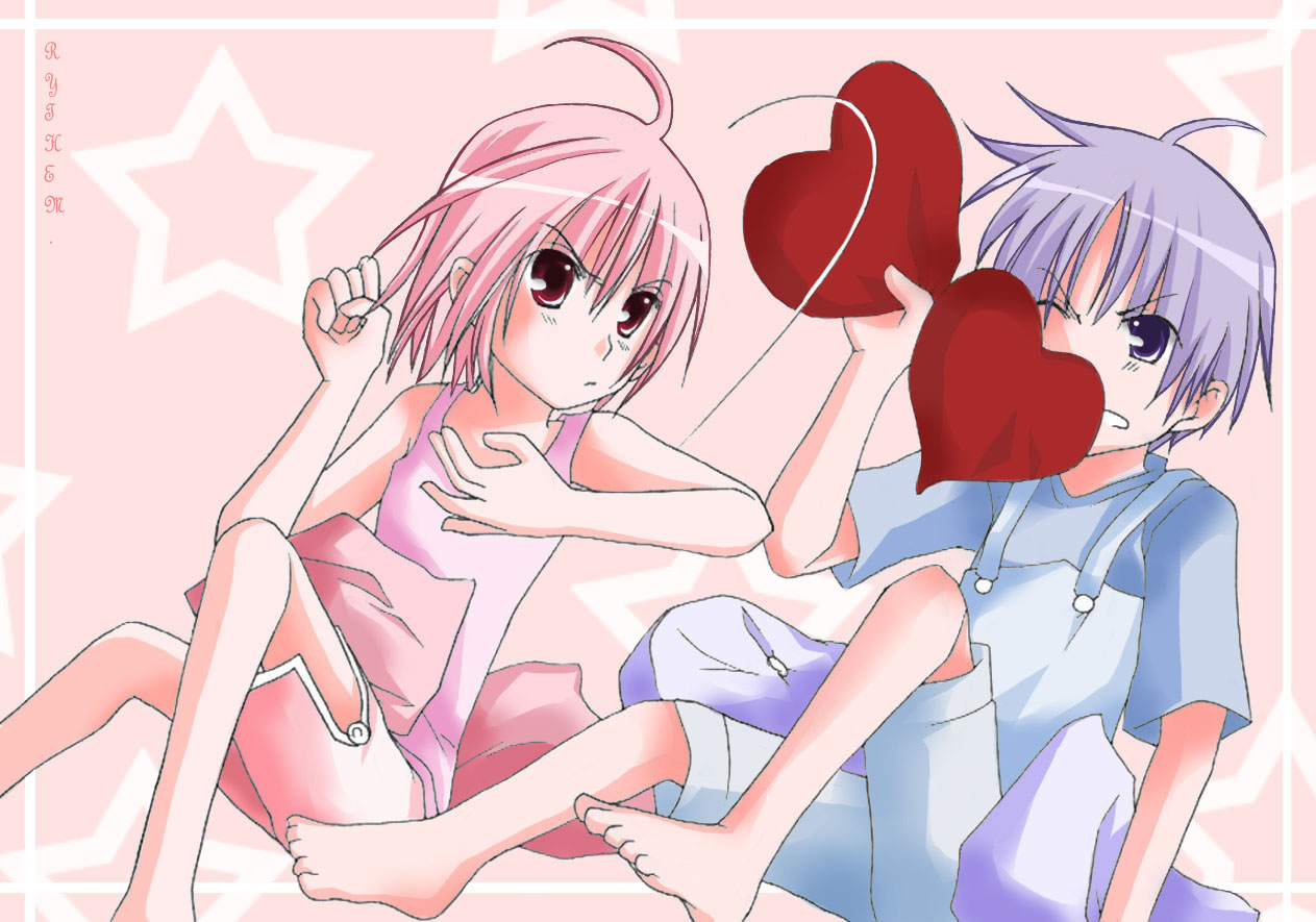 Description: Two anime girls with pink hair and blue eyes.