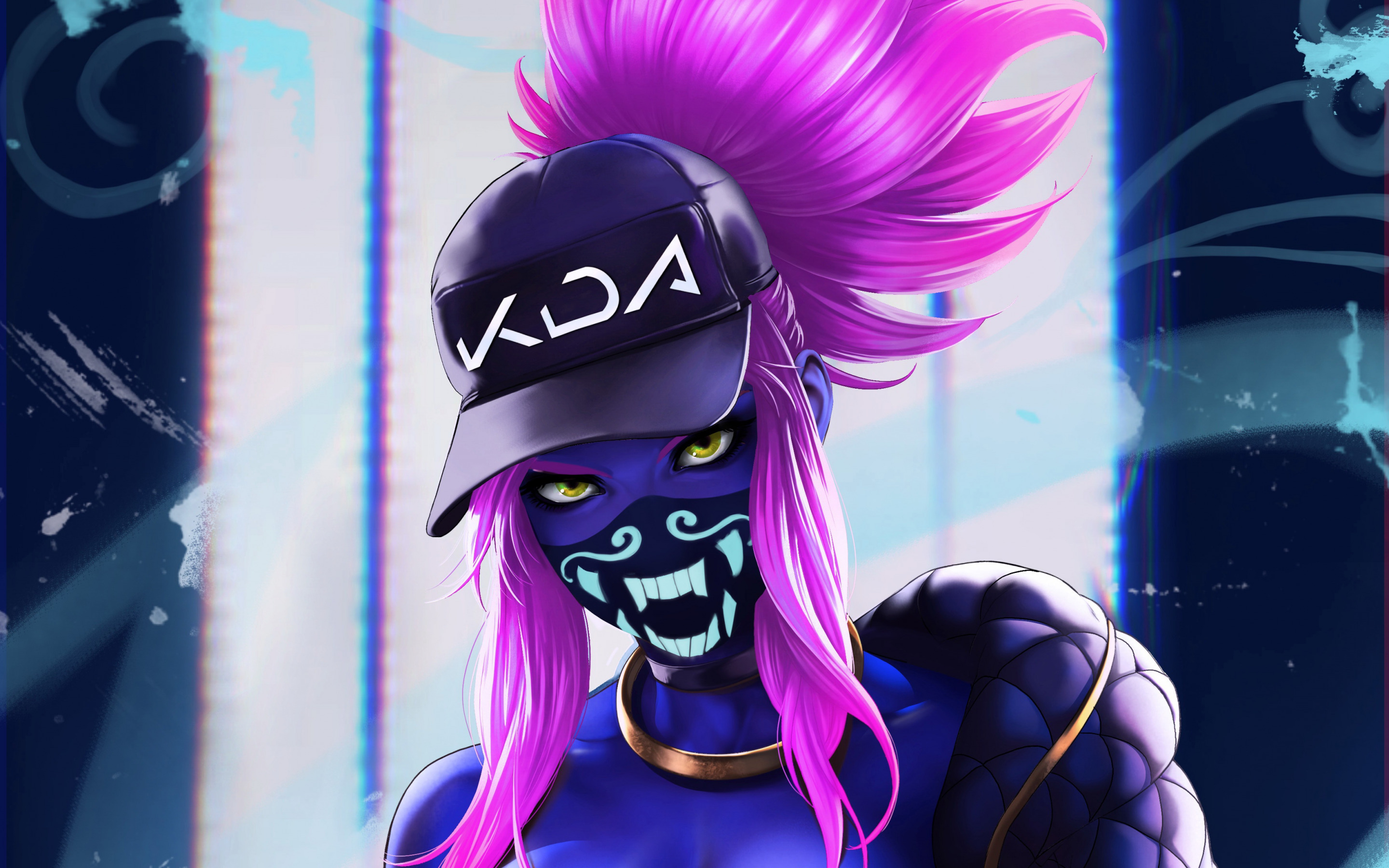 Description: A cartoon character with pink hair and a baseball cap on.