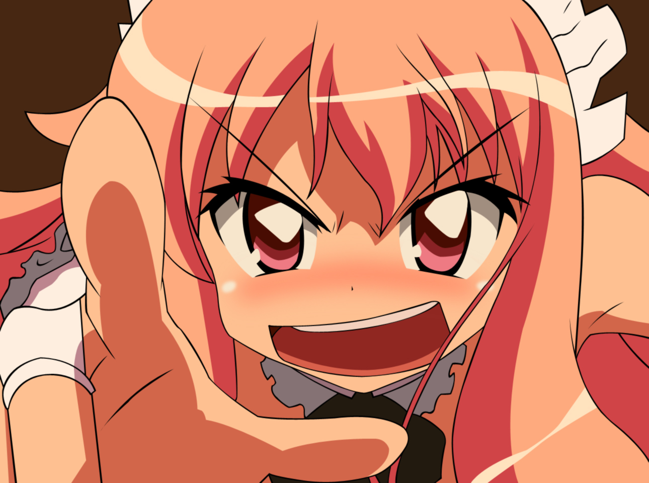 Description: A woman with pink hair and a black tie and a white shirt and a red and black tie and a black and white shirt.