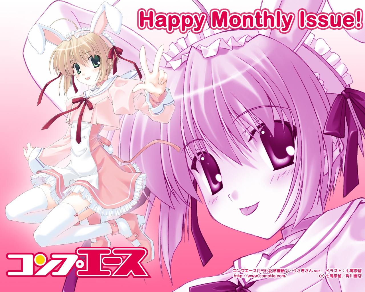 Description: A girl with pink hair and a cat ears is smiling and holding a pink object in her hand.