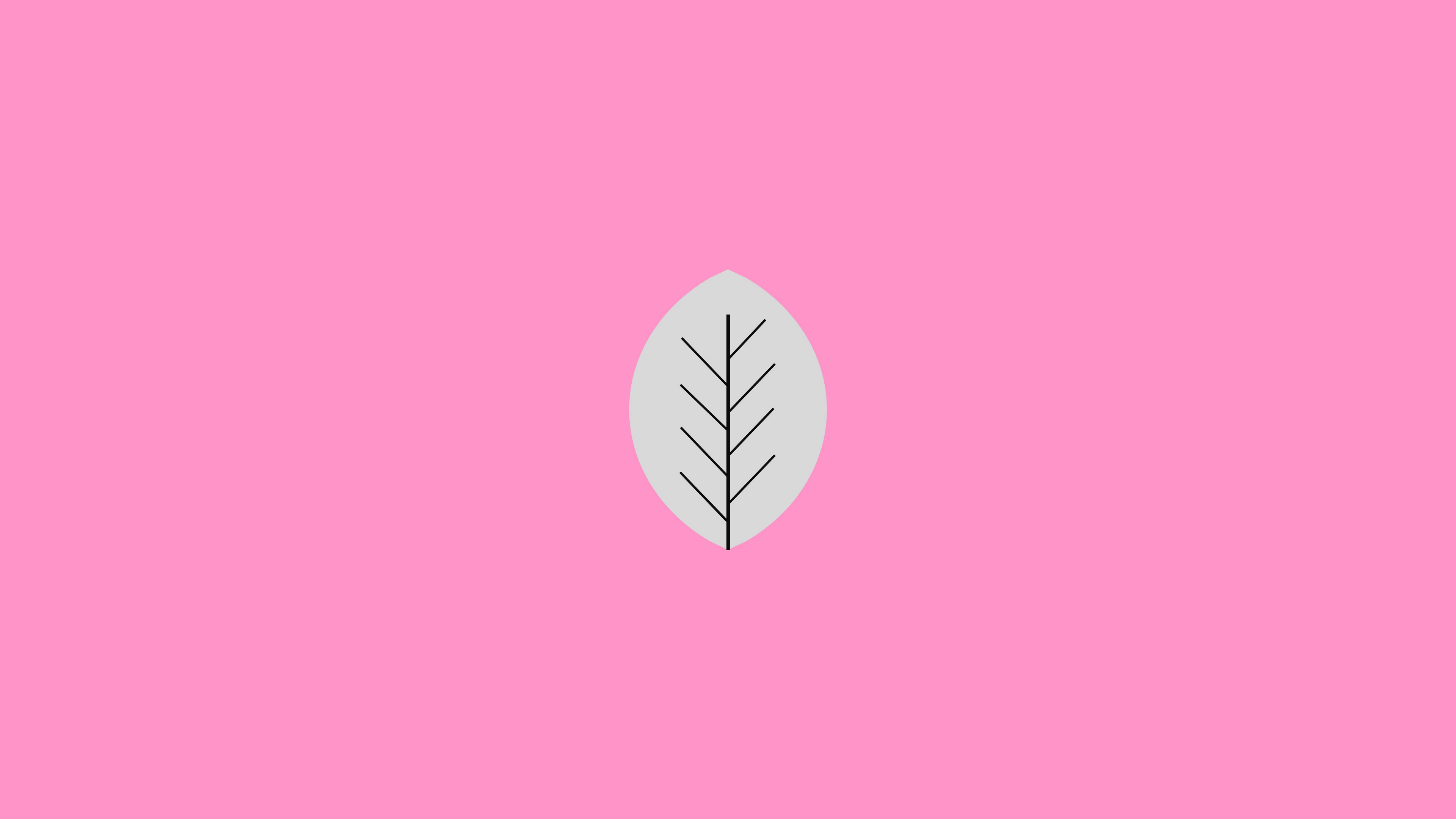 Description: A pink background with a single leaf on it's side and a smaller leaf on the other side.