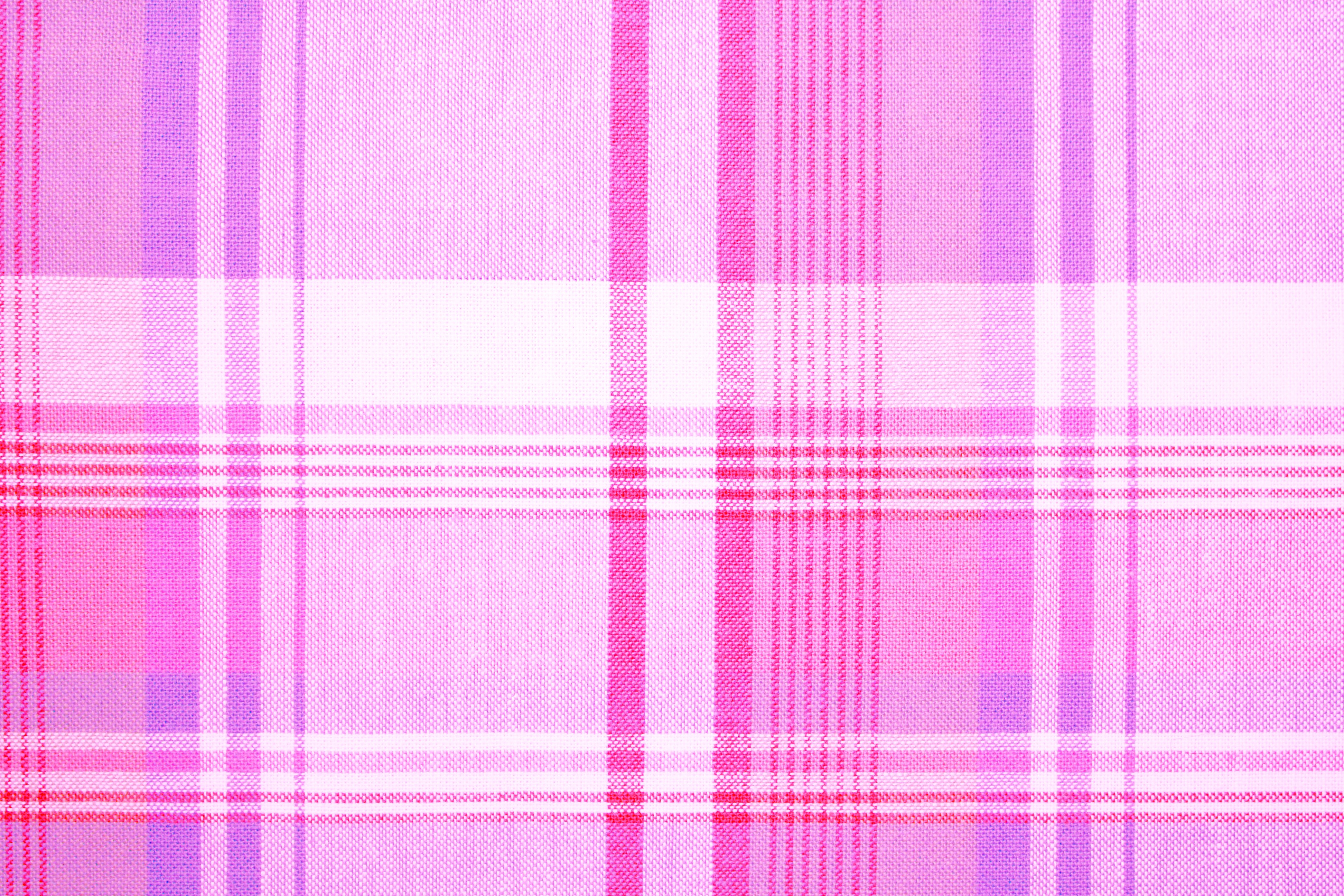 Description: A pink plaid fabric with a white stripe on it's side and a pink and white stripe on the side.