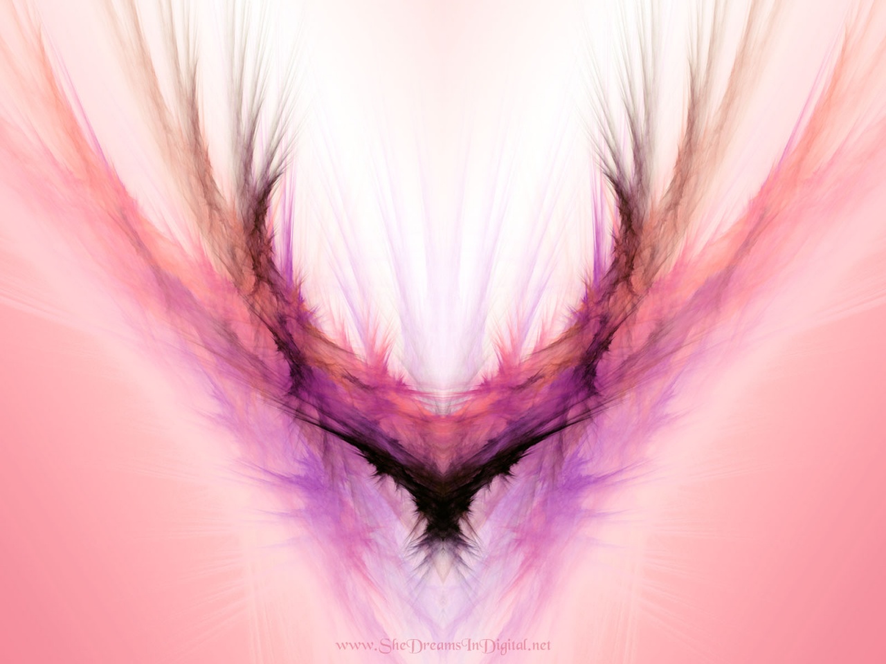 Description: A pink and purple abstract background with a black bird's wing in the center of the image.