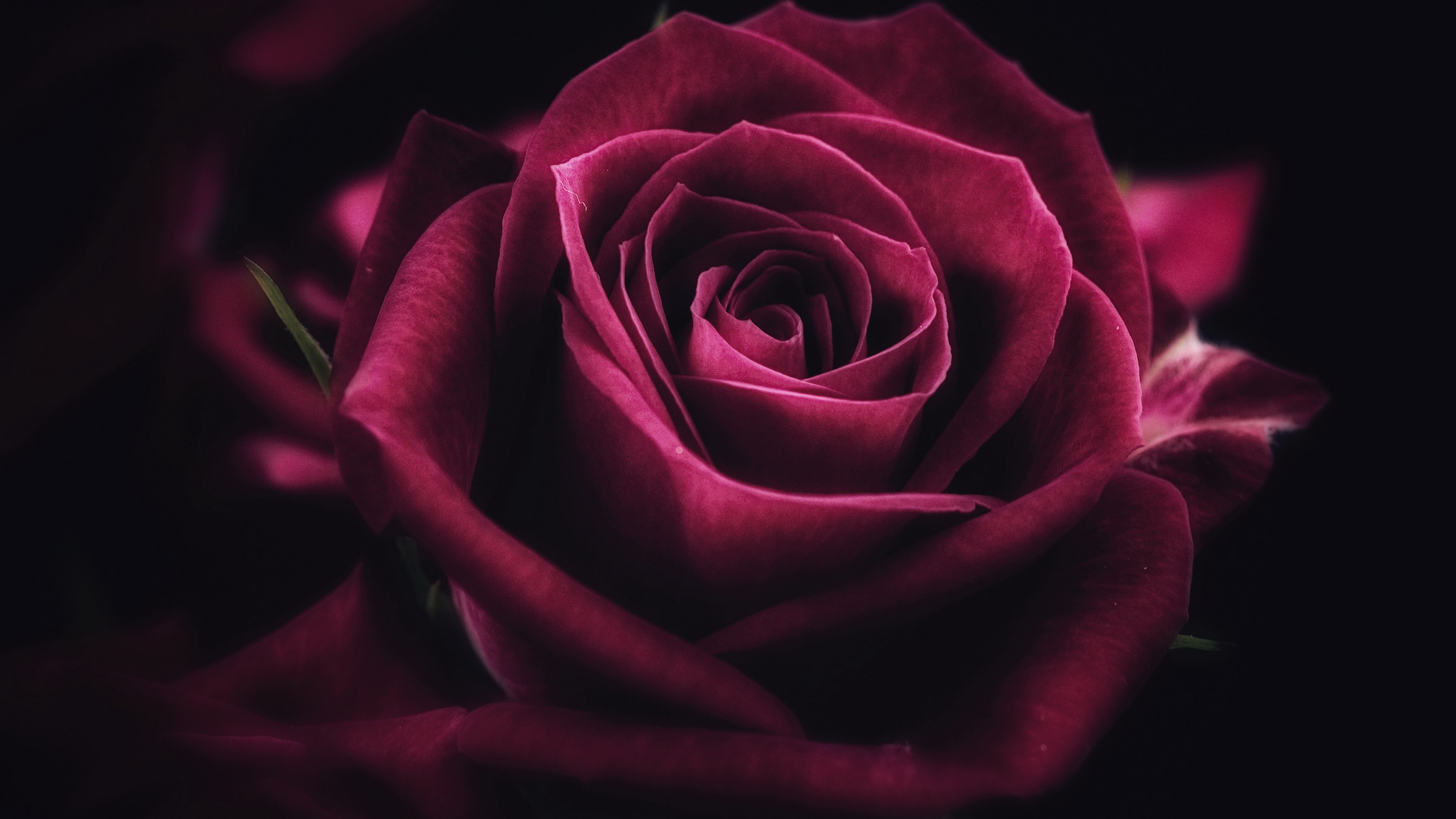 Description: A close up of a pink rose on a black background with a blurry effect to the center of the rose.