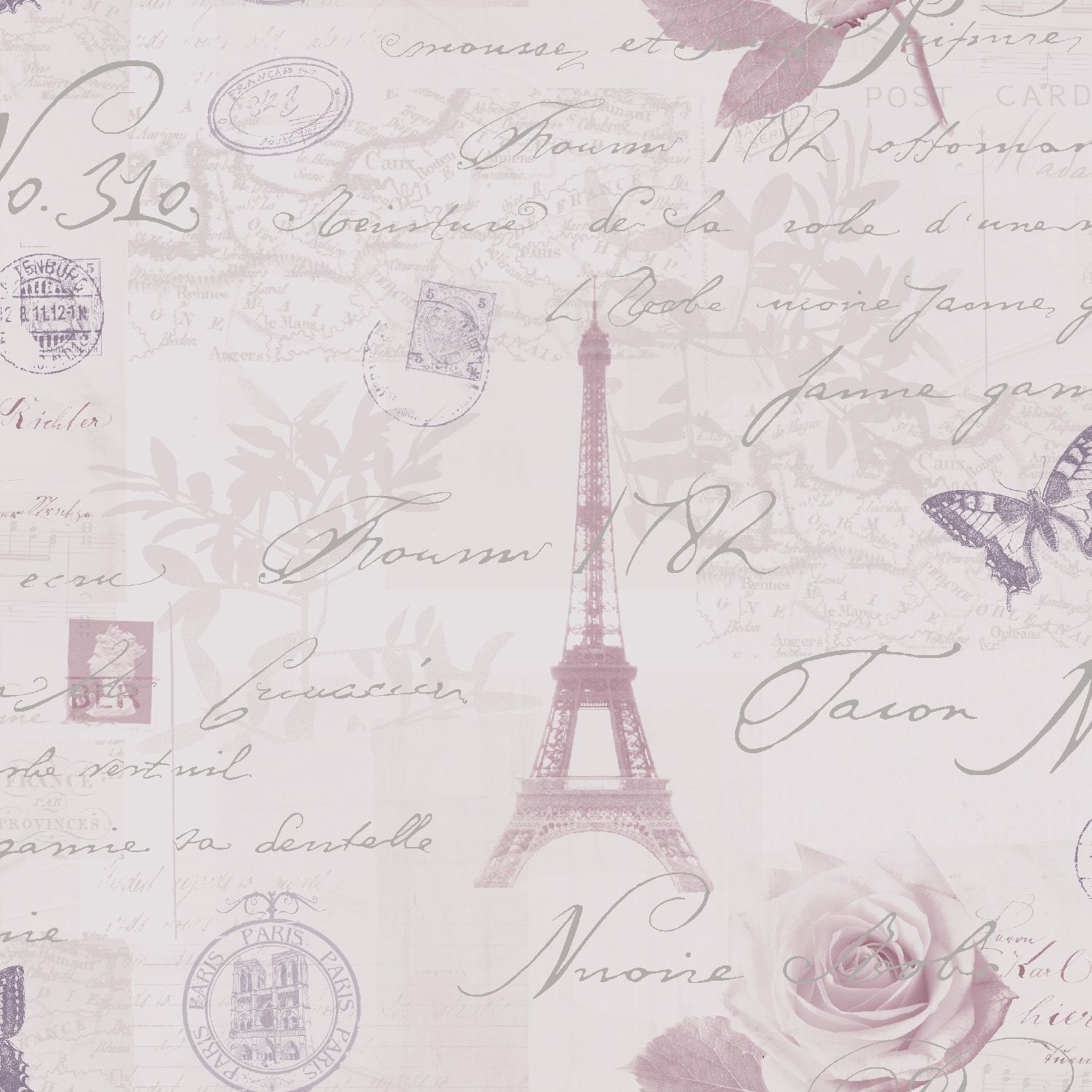 Description: A wallpaper with a pink rose and a eiffel tower on it's side and a butterfly flying over it.