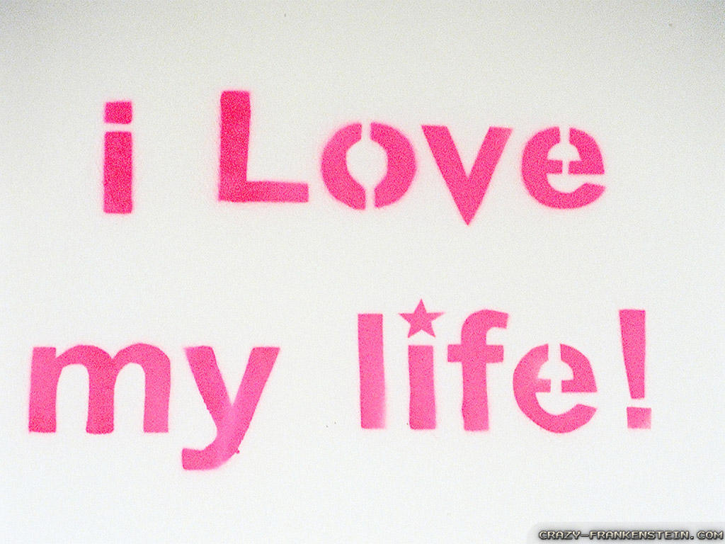 Description: A picture of a pink sign that says i love my life on it with a star in the middle.