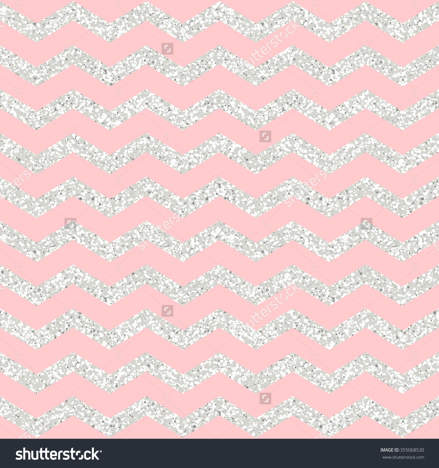 Description: A pink and silver chevron pattern background with glitter effect on the edges of the chevron pattern is.
