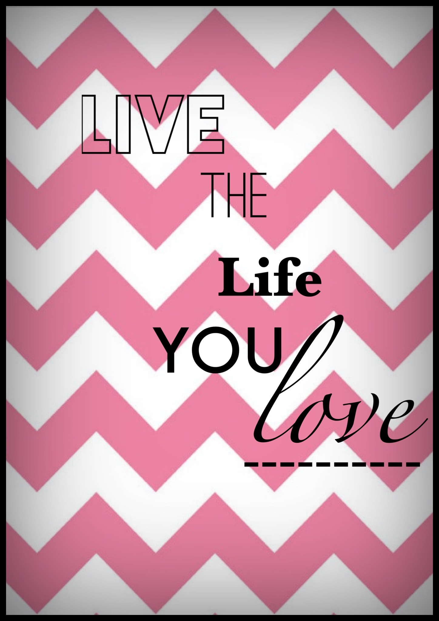 Description: A pink and white chevroned background with the words live the life you love on it's side.