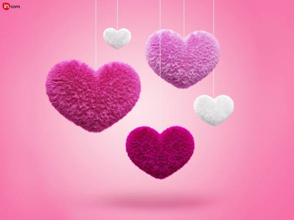 Description: A pink and white heart hanging from strings on a pink background with a pink background and white hearts hanging from strings.