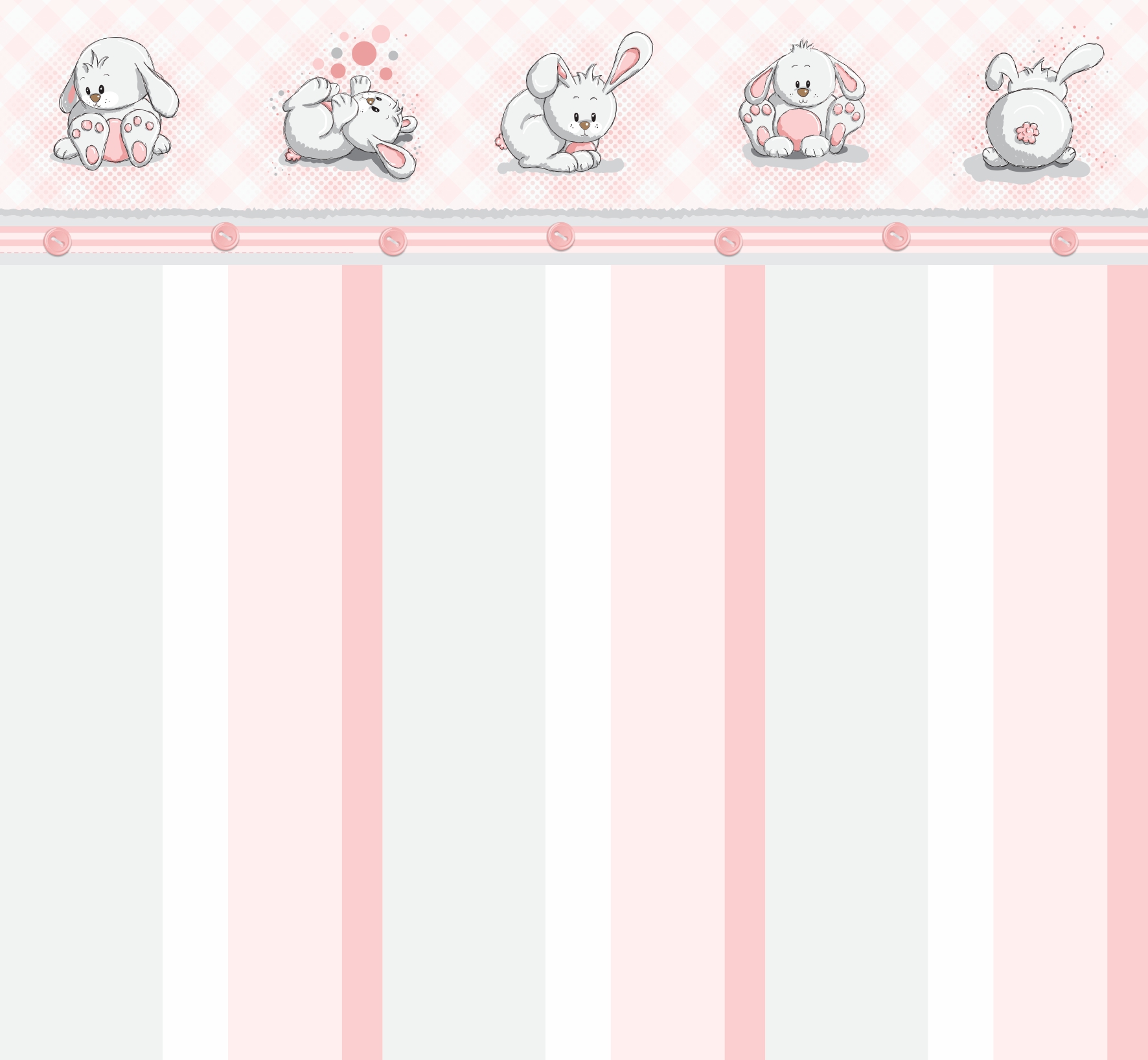 Description: A pink and white wall with a line of cartoon animals on it and a pink and white background with a line of cartoon animals.