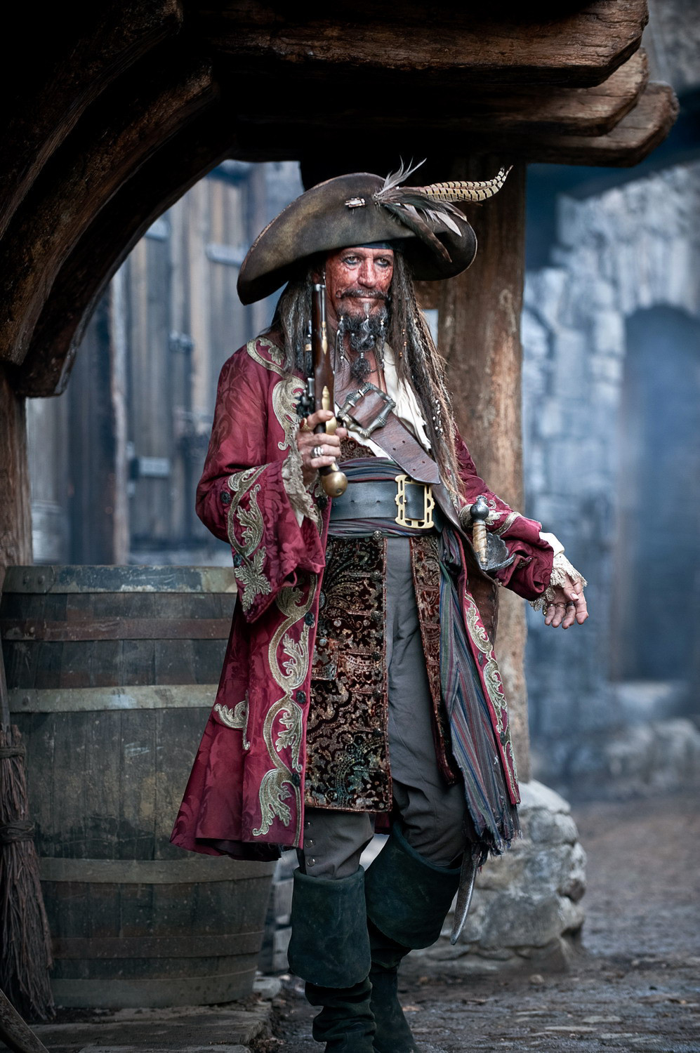 Description: A man dressed in pirate costume and a hat with a pipe in his mouth and a pipe in his mouth.