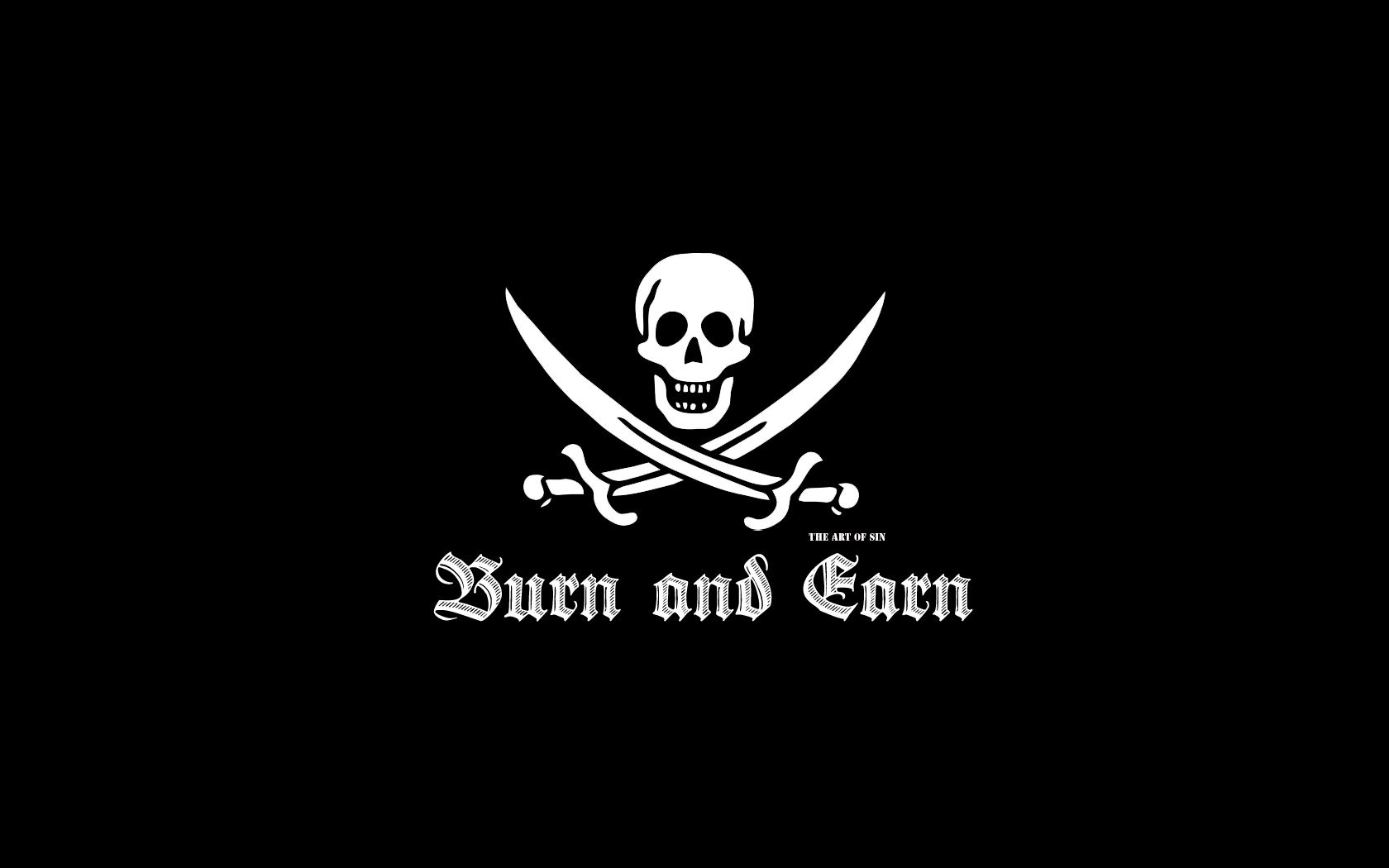 Description: A pirate logo with two crossed swords on it's side and a skull and crossbones on the front.